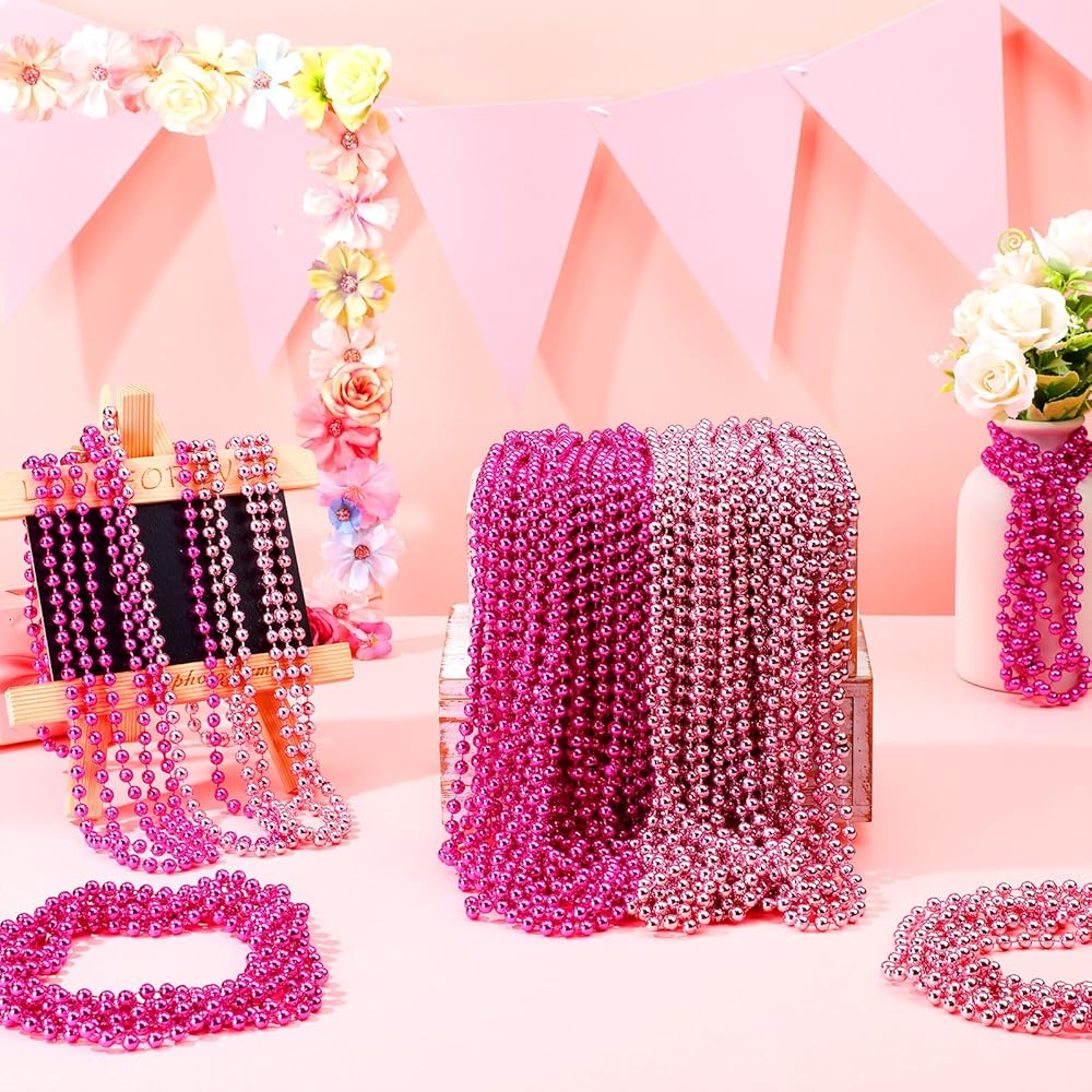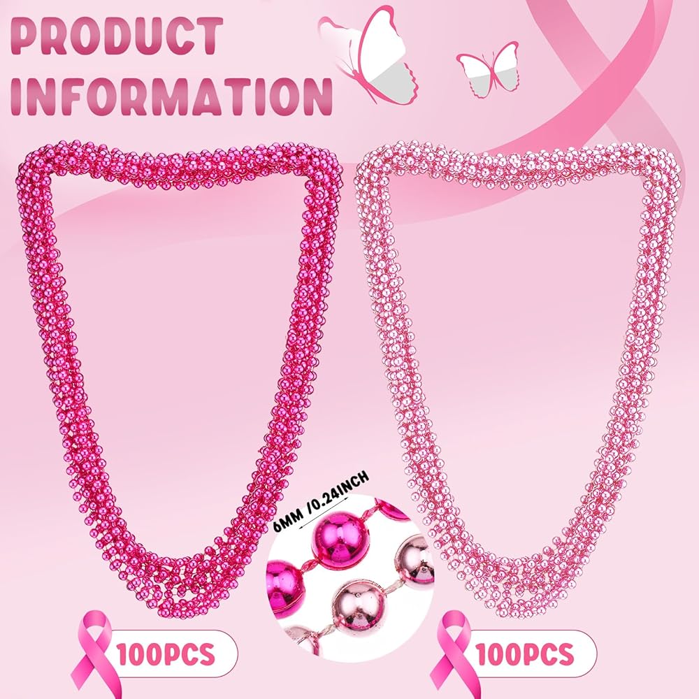 Abundant Breast Cancer Awareness necklace: the mardi gras beads bulk contains 200 pieces of beaded necklaces in dark pink and light pink; 2 pieces for each color; Sufficient quantity can meet personal wearing and big public fundraising purposes, suitable for sharing with groups of people