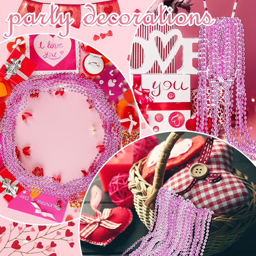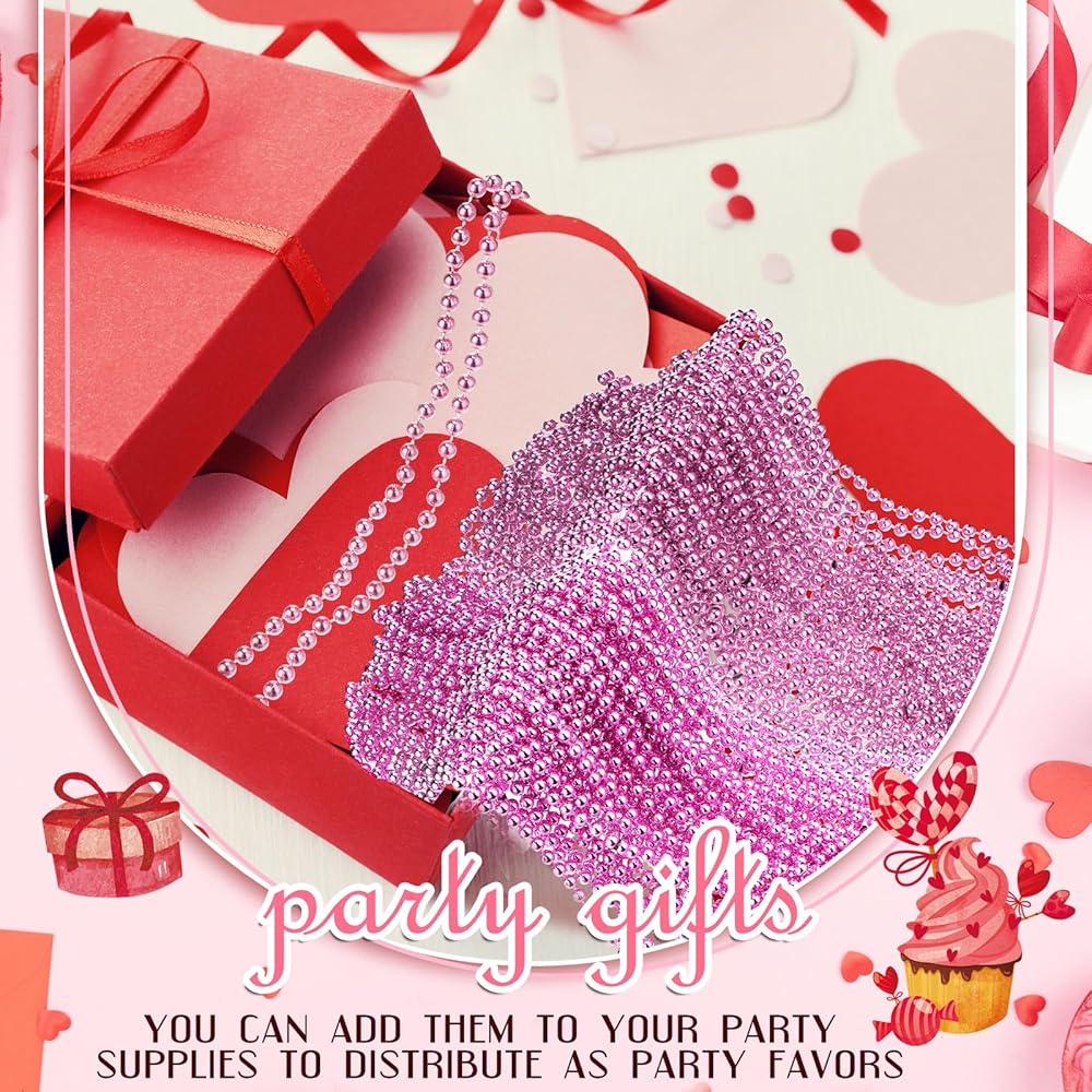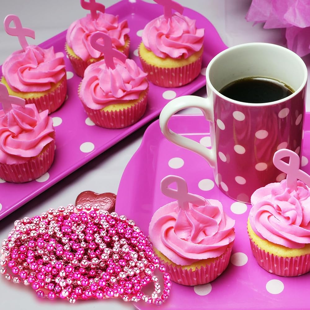 Bucherry 200 Pcs Breast Cancer Awareness Necklace 33 Inch 7 mm Pink Bead Necklace Decoration Bulk Red Round Beaded Costume Decor for Breast Cancer Accessories Souvenir Women Event Parade