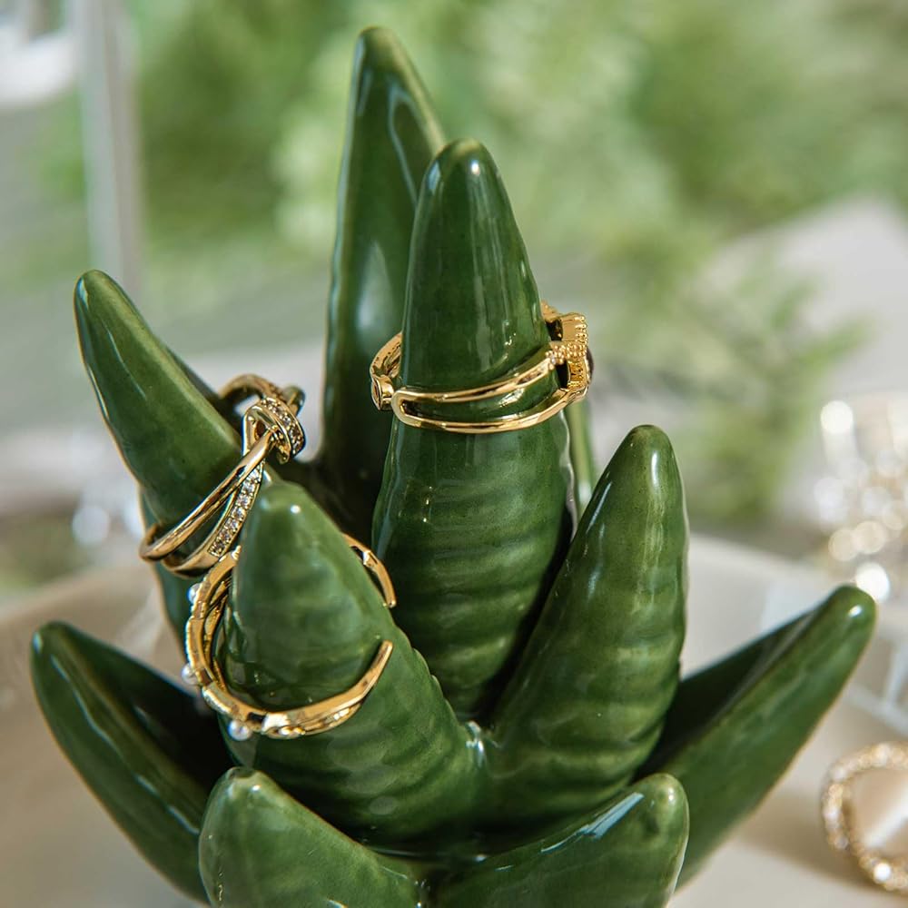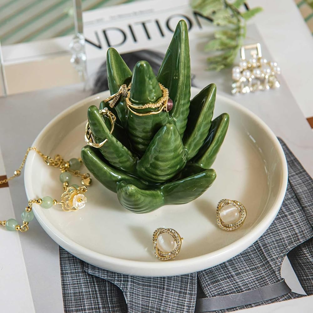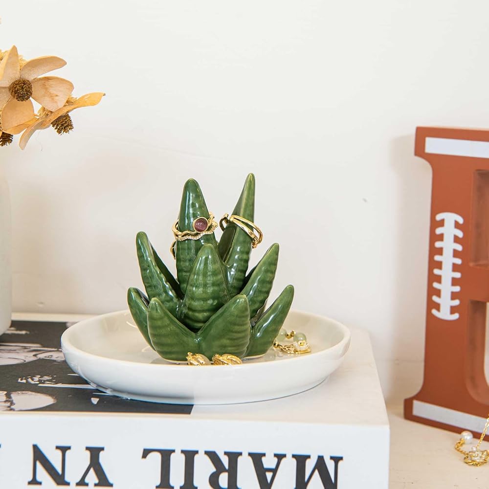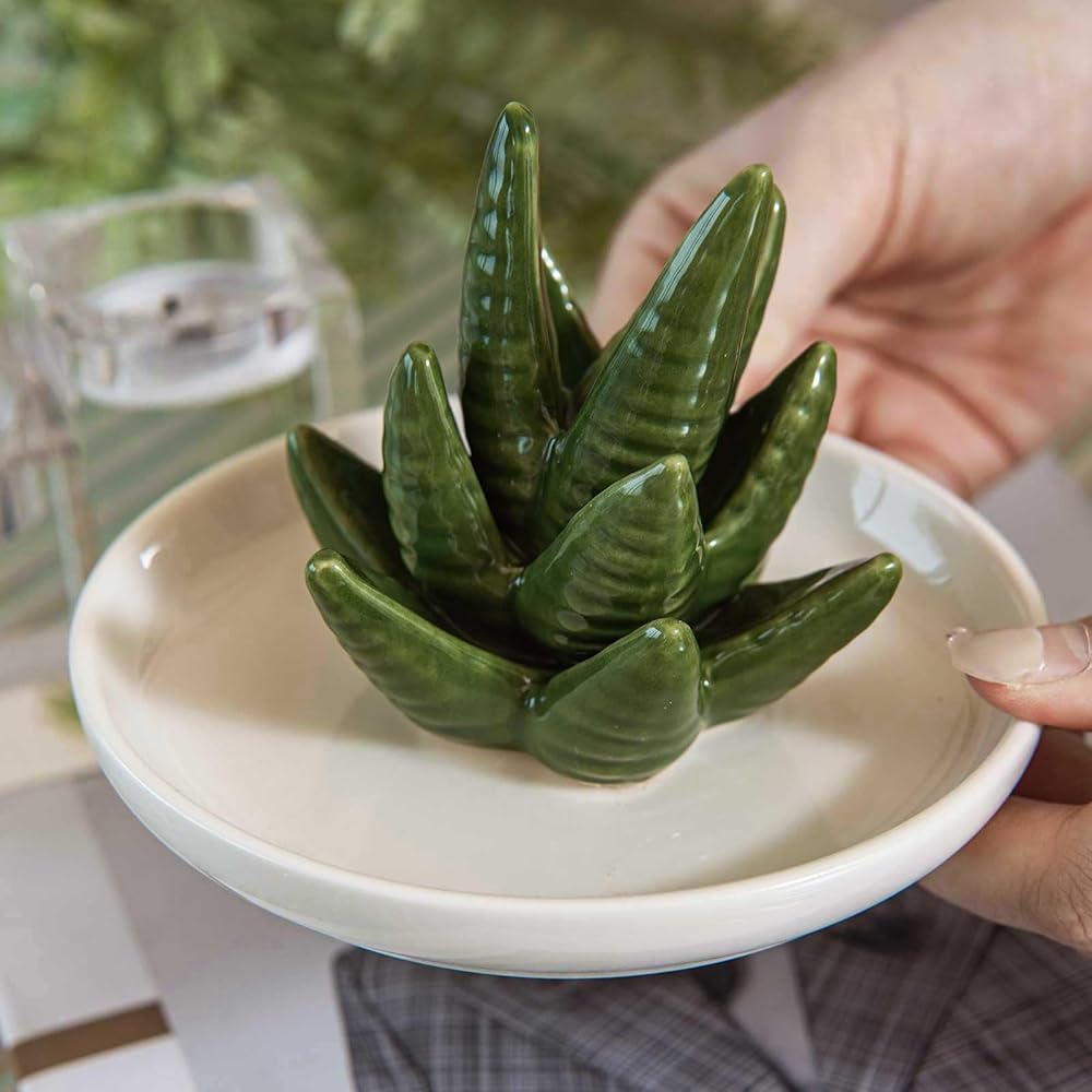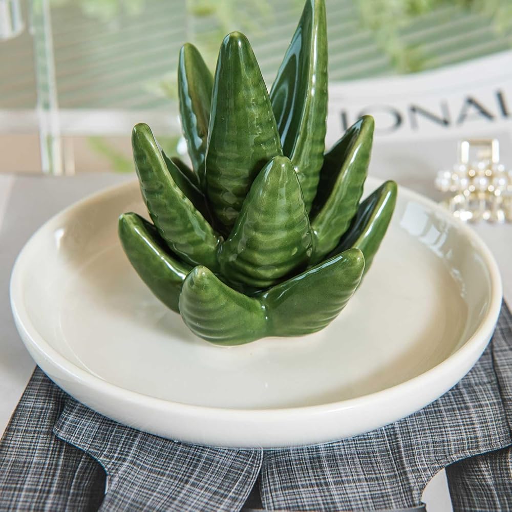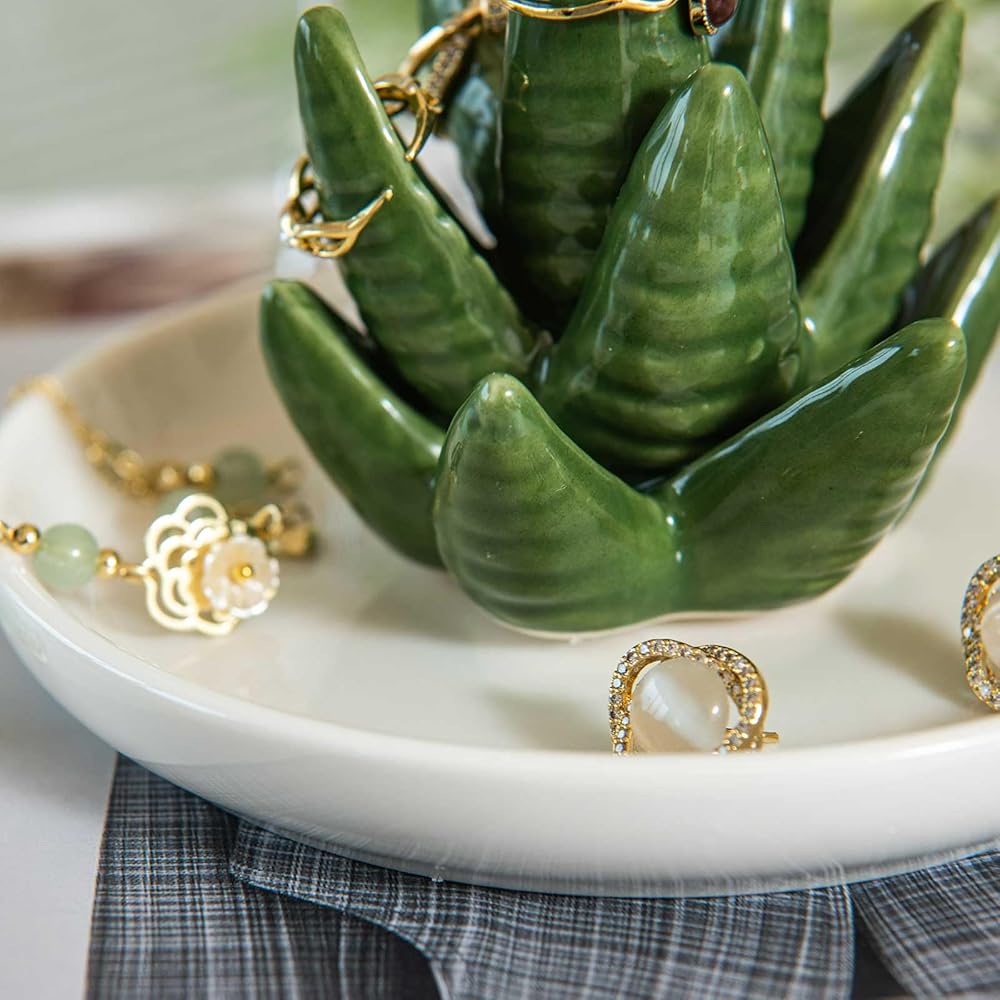 Aloe Ring Holder Dish, Ceramic Jewelry Tray Trinket Dish for Necklace Keychain Organizer, Cute Funny Birthday Wedding Mothers Day Gift for Women Friends Girls