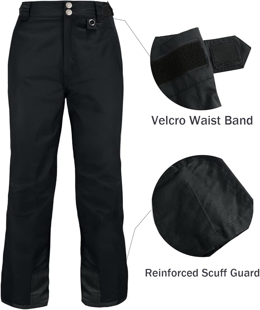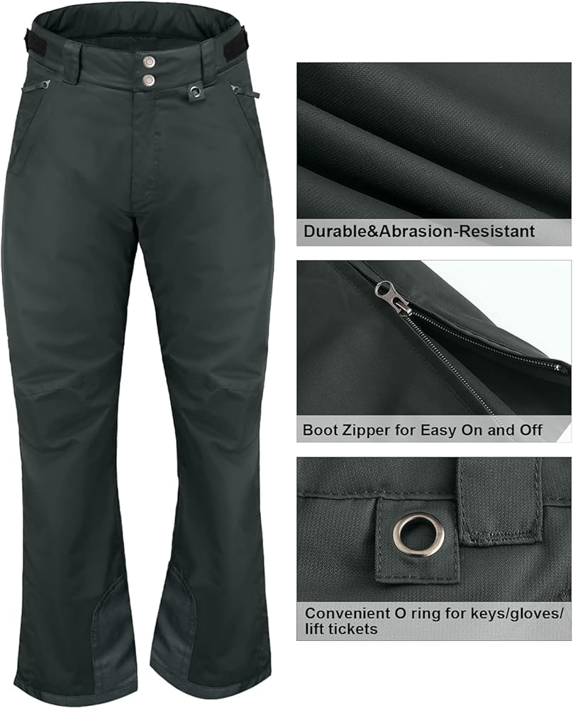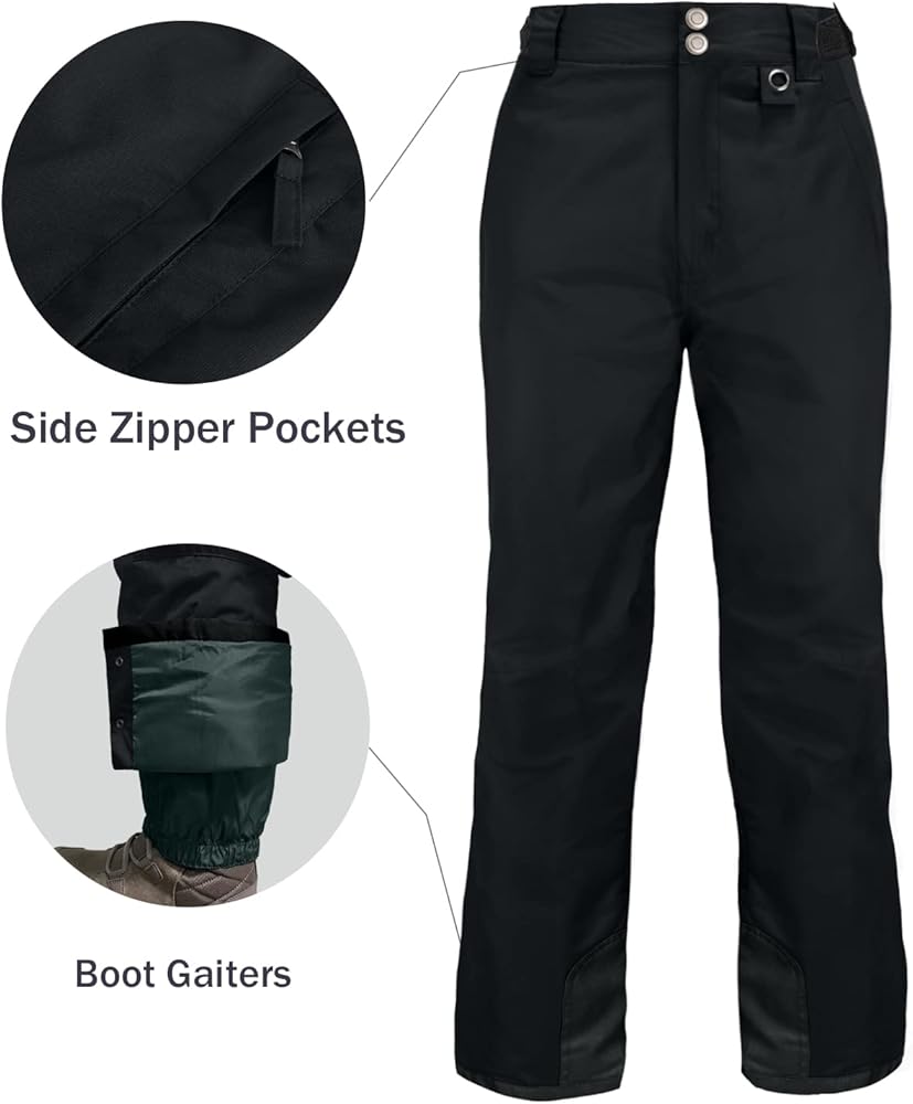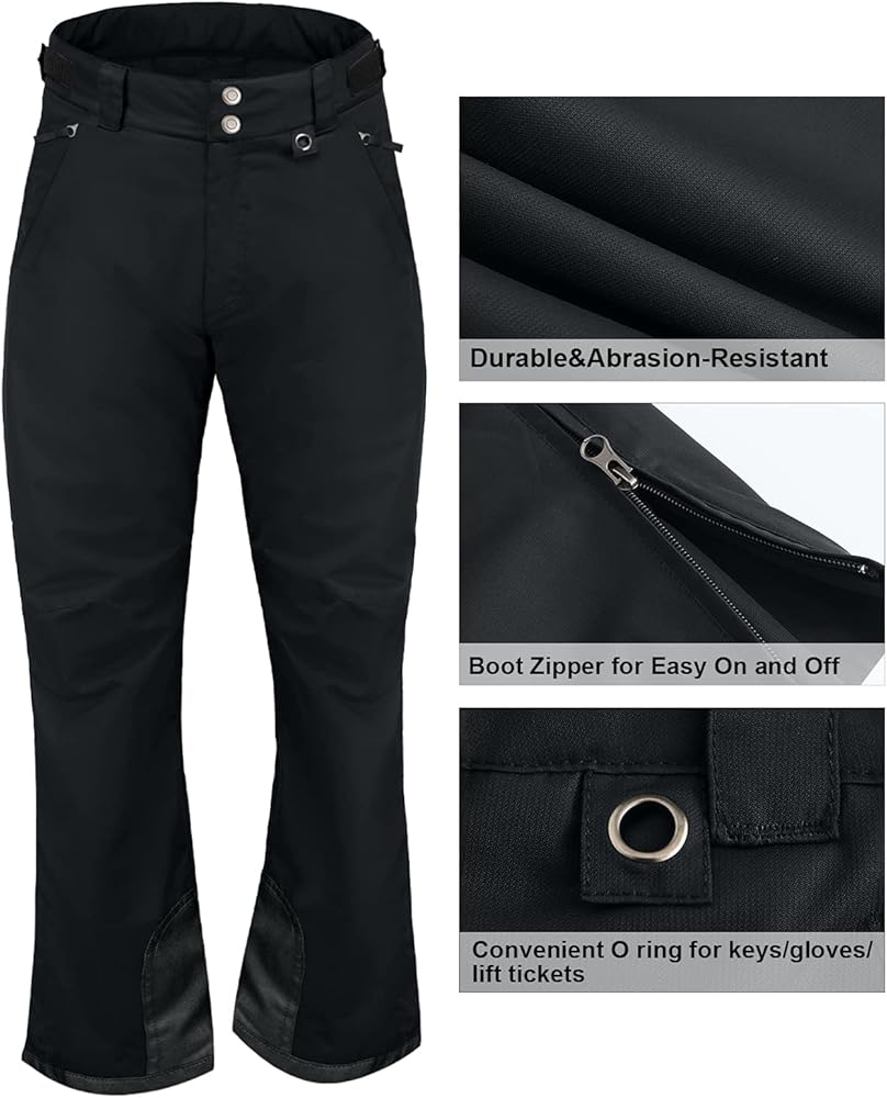 Waterproof: Our snow pants feature a professional water-repellent coating, while the zippers and pockets are also waterproof. You won't worry about getting wet while skiing, snowboarding, or on rainy days. Our waterproof snow pants will protect you all around effectively in a lightweight and low bulk way, keeping your body dry and warm all day long.