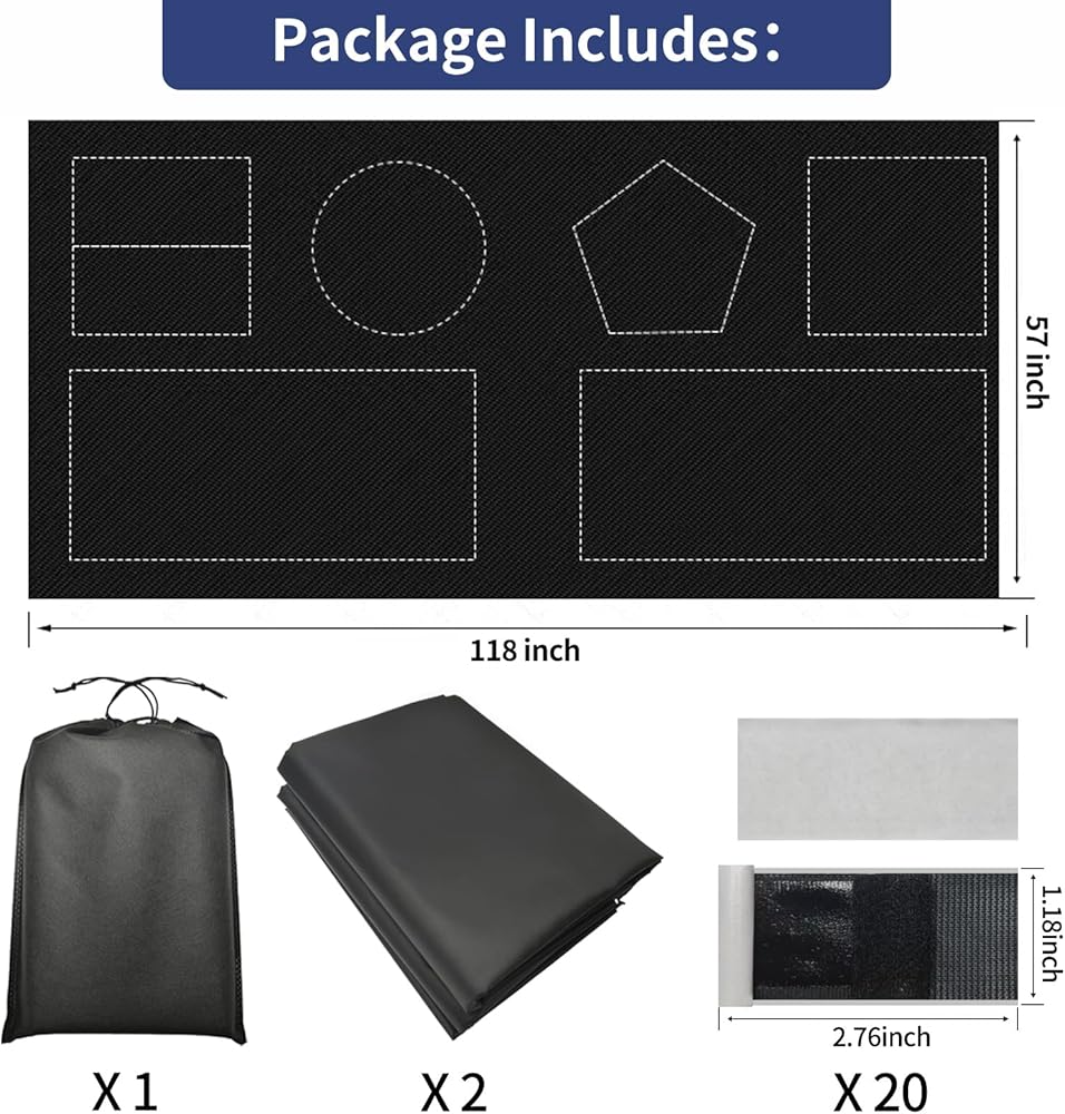 【Simple Installation】: Our 118*57" blackout window covers come with durable adhesive hooks and loop strips that leave no residue and can withstand high temperatures. No need for drilling or special tools. Attach the hook & loop dots and tapes to the window frame. No need for drilling or special tools. Also, it can be easily cut to any shapes you want to perfectly fit various windows.