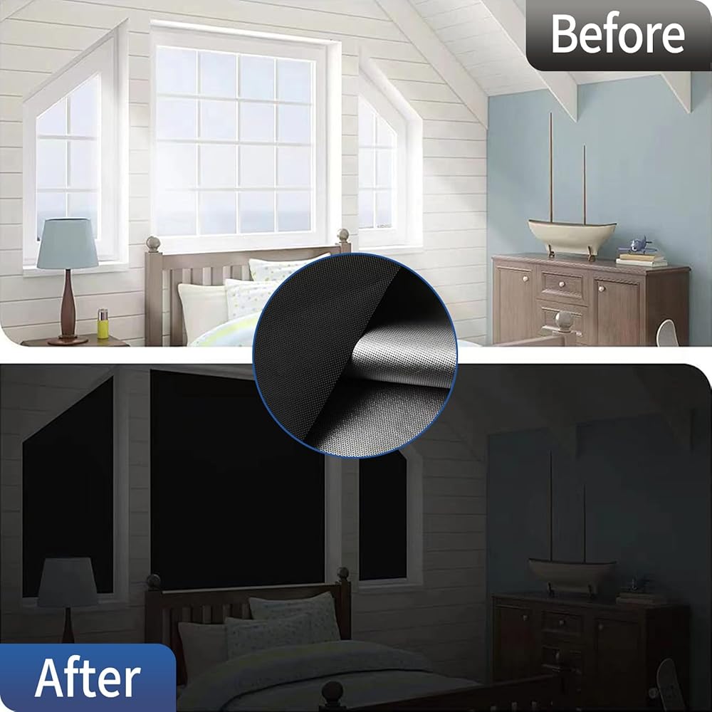 【Adjustable Size】: 2 Packs 118*57inch Our temporary blackout shades are incredibly flexible and can be tailored to fit any indoor window shape or size, including popular styles such as bay windows, skylights, and even car windows. With their generous dimensions and easy cutting process, they're perfect for windows of various sizes, ranging from small to extra large.