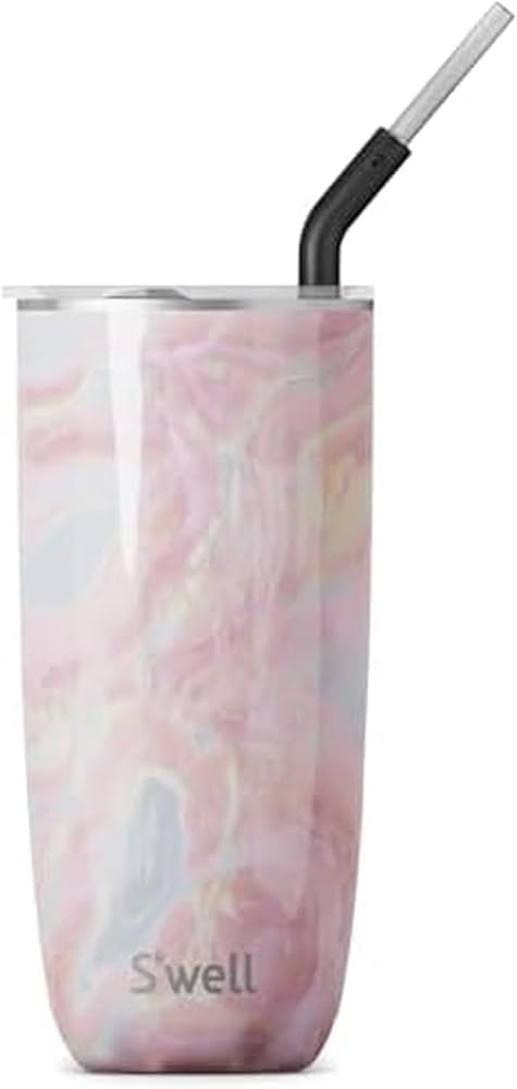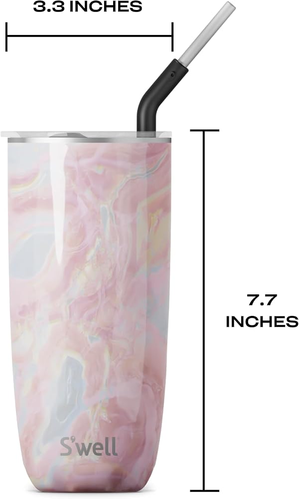 TRIPLE-LAYERED INSULATION: S'well 24oz stainless steel Tumbler with Straw. Triple-layered, vacuum-insulated construction. Exclusive Therma-S'well Technology keeps beverages cold for 18 hours and hot for 5. Sleek and beautifully crafted. Top-rack dishwasher safe.