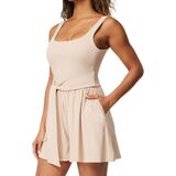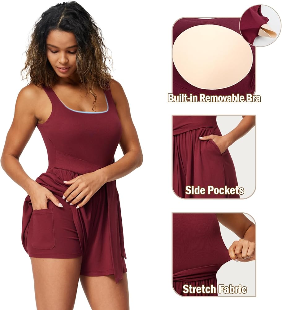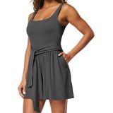 【Features】One Piece Workout Onesie is designed with slim-fitting sleeveless tank top and athletic skirts, built in shorts. An adjustable belt shapes your waist and perfectly covers your belly. Removable Bra pads, square neck, open back, elastic strap. Workout romper, the summer outfits is a must have staple in your closet.