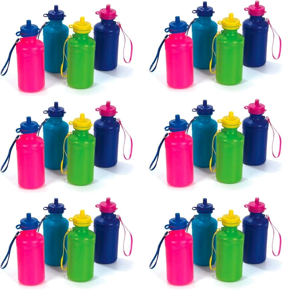 ✔️ Features an assortment of neon colored bottles with drink-top spouts and handy wrist straps!