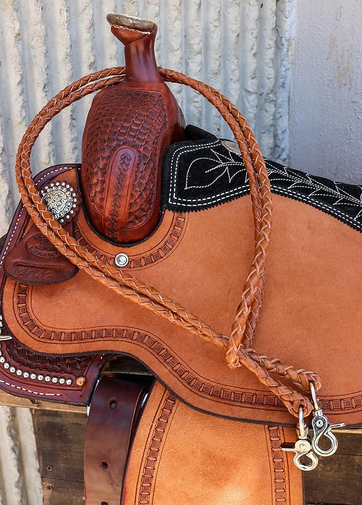 4 Plait Braided Leather Roping Reins 1/4" x 7' Handmade leather over a heavy nylon core