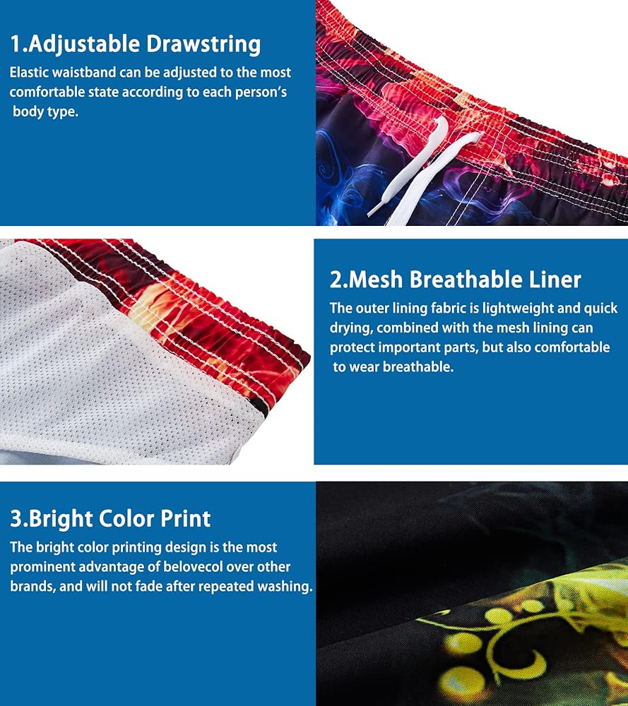 Occasions: Swimming, walking or at home, quick dry swim trunks are perfect for you. Casual beach shorts suit for various beach sports and activities, including beach volleyball, soccer, swimming, surfing, running.