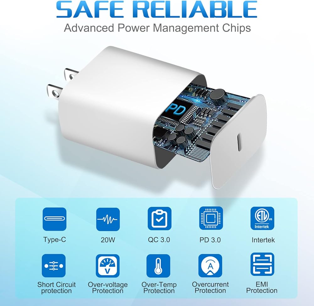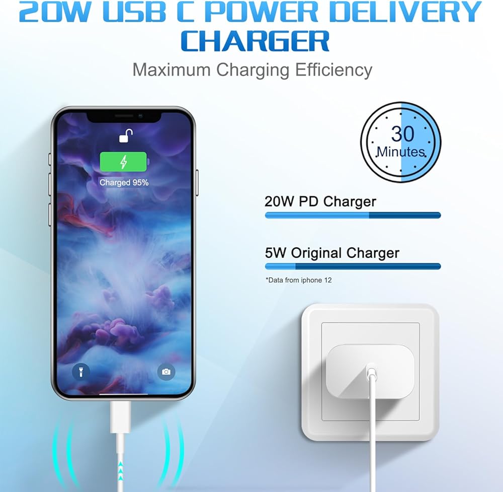 PD 20W Type C Fast Charger Block, Othoking USB C Wall Charger with 4FT USB C to Lighting Fast Charging Data Sync Cable Compatible for iPhone 14 13 12 11 XS XR X 8 iPad more