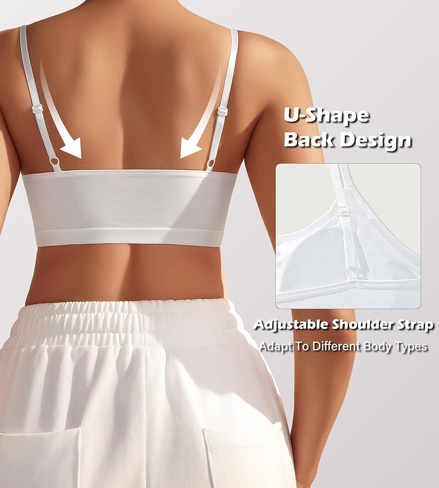 THIN & REMOVEBLE CUP: Built-in removable pads to provide optional added coverage and natural shape. The cup is thin, and our cami bras no underwire are equipped with a layer of mesh, which is more breathable overall, keeping you fresh and not sticky all day long.