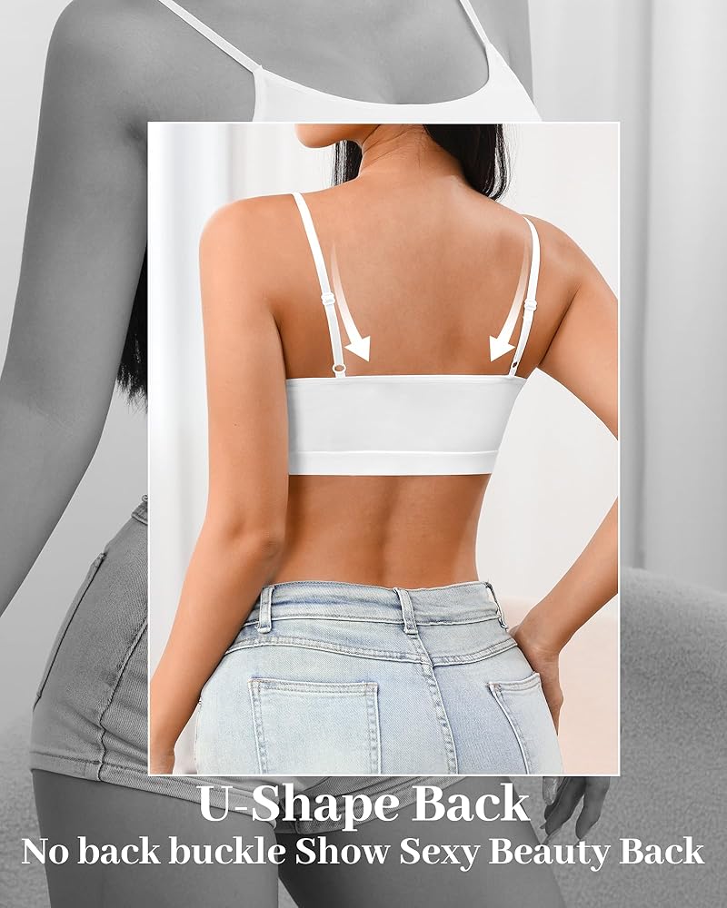 ADJUSTABLE SHOULDER STAPS: Pullover style. Adjustable thin shoulder straps for easy adjustment, do not slide or tighten. U-shaped back design without buckle can evenly apply force, fits smoothly on the back to show your sexy beauty back and adds points to coolness.
