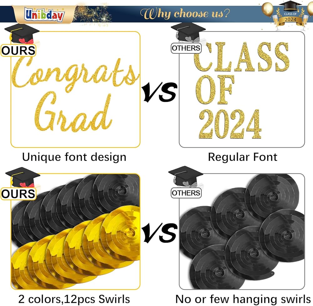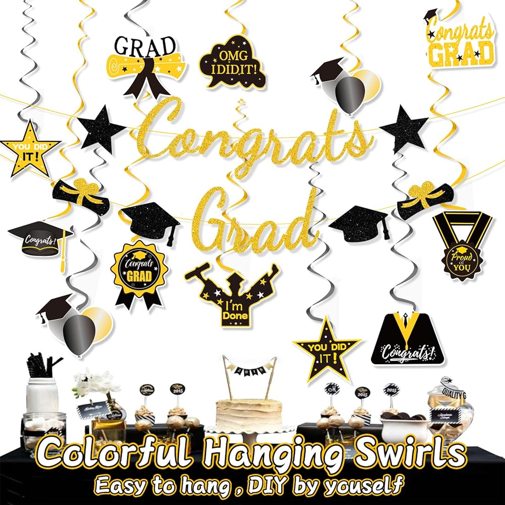 𝐖𝐢𝐝𝐞 𝐀𝐩𝐩𝐥𝐢𝐜𝐚𝐭𝐢𝐨𝐧: Graduation party supplies are suitable for 2024 graduation party, congrats grad and so on; You just need to assemble these hanging swirls and hang them from walls, ceiling, in a doorway, tree branches in your backyard for outdoor indoor parties; These hanging swirls will set your graduation party the standards for nice and fab graduation party this year and leave your guest with a nice impression