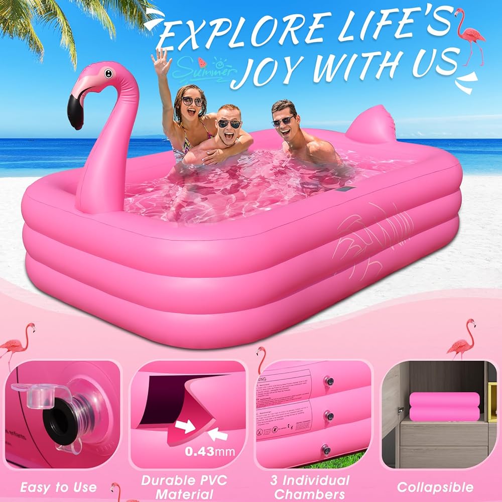 【Elegant Flamingo Pink Pool】The striking flamingo design will bring your garden with a taste of the tropics, the magical flamingo backyard pool brings the magic to life with 360* radiance that cascades a breathtaking. On those hot summer nights. StarOcean Inflatable pool brings lots of laughs and good times for Guys & your kids!!!