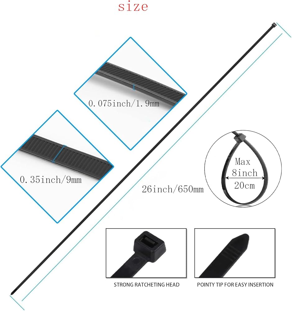 26 Inch Extra Large Zip Ties Heavy Duty For Outdoor Use 50 Pieces,175 Pounds Tensile Strength,UV Resistant,Black
