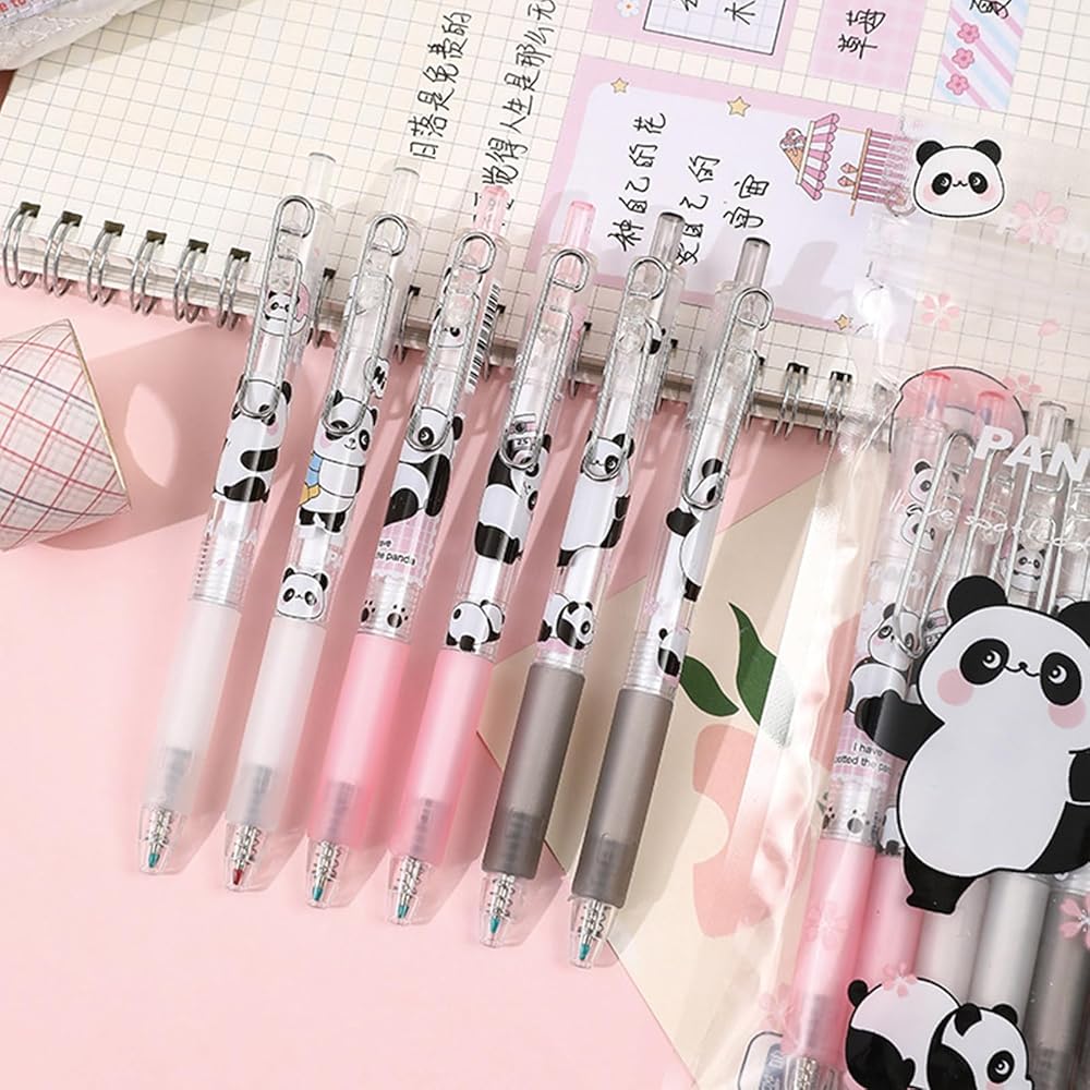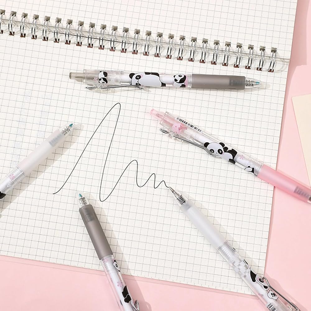 Cute Retractable Pen: The cute gel ink pens are made of plastic material, 6 pieces cartoon pens with different panda patterns and lovely colors, so cute, perfect pens for women girls boys.