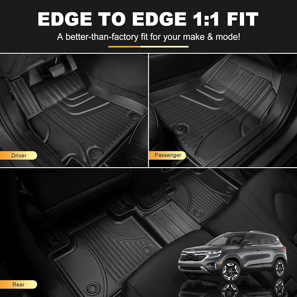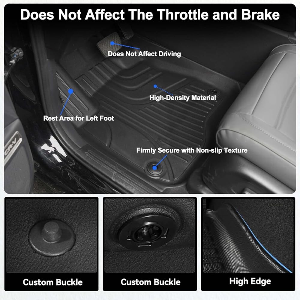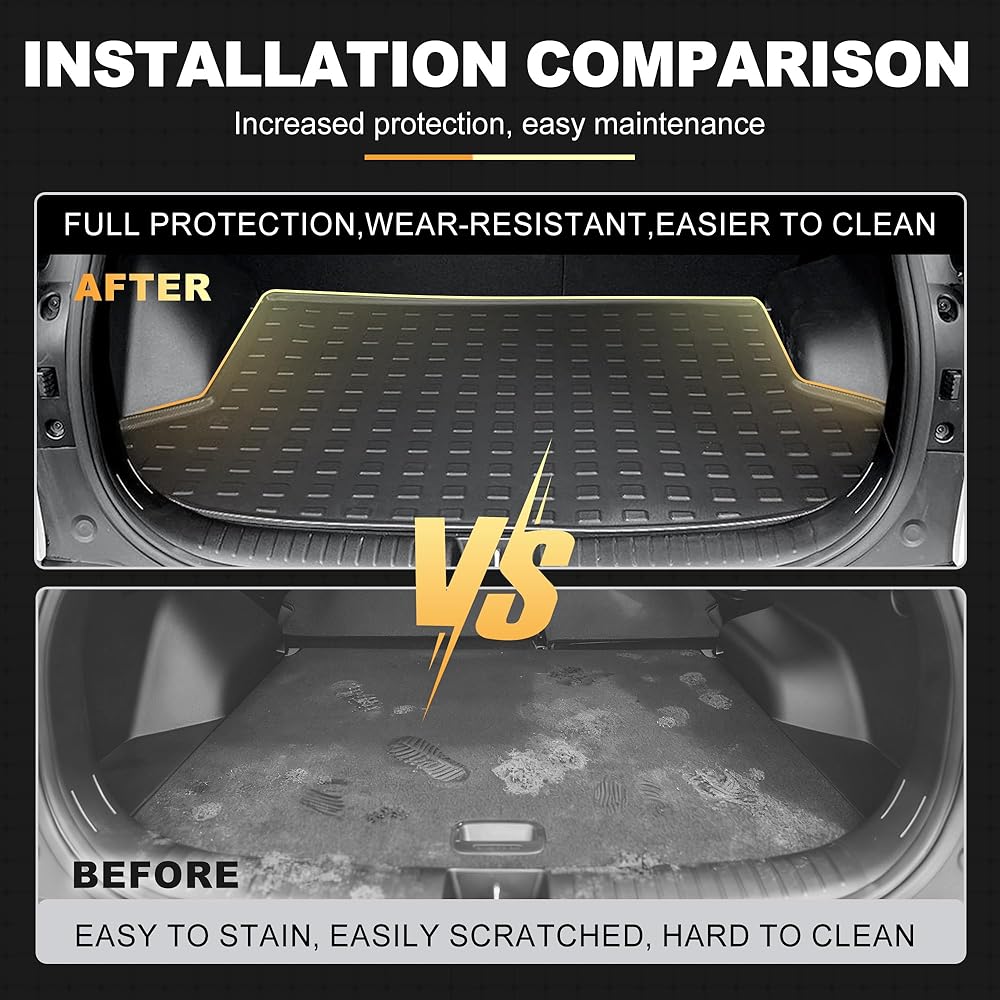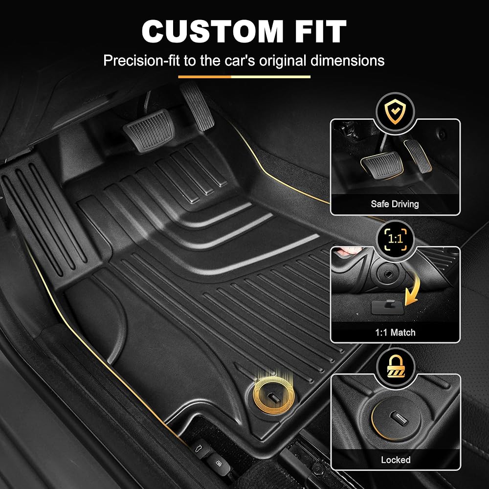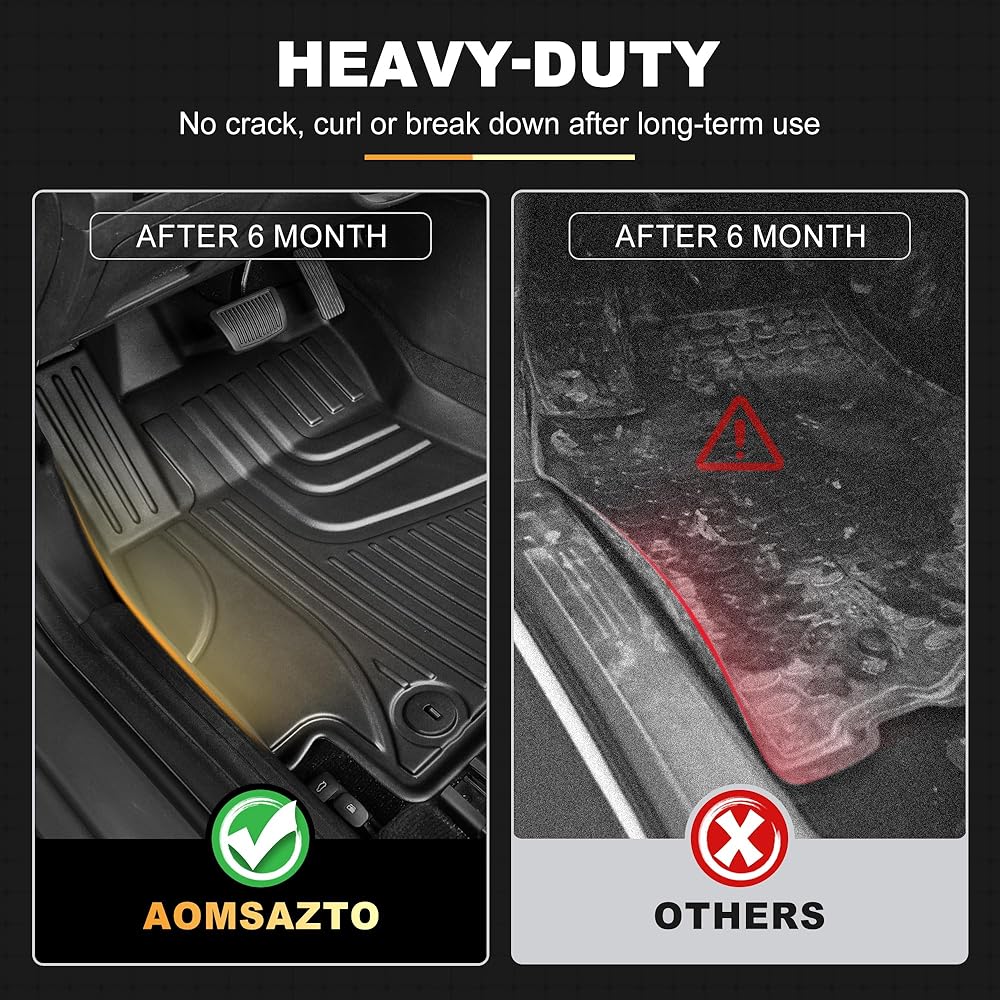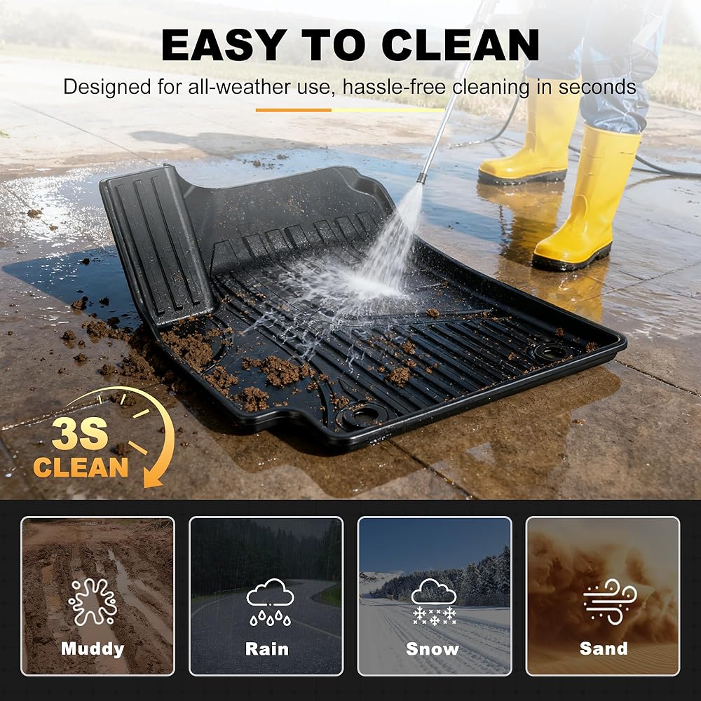 【DURABLE MATERIAL】The floor liners made with high quality non-toxic and odorless 100% TPE material, environmentally friendly, odorless,wear-resistant,dirt-resistant, and easy to clean, ensures you are 100% safe even in extreme hot weather.