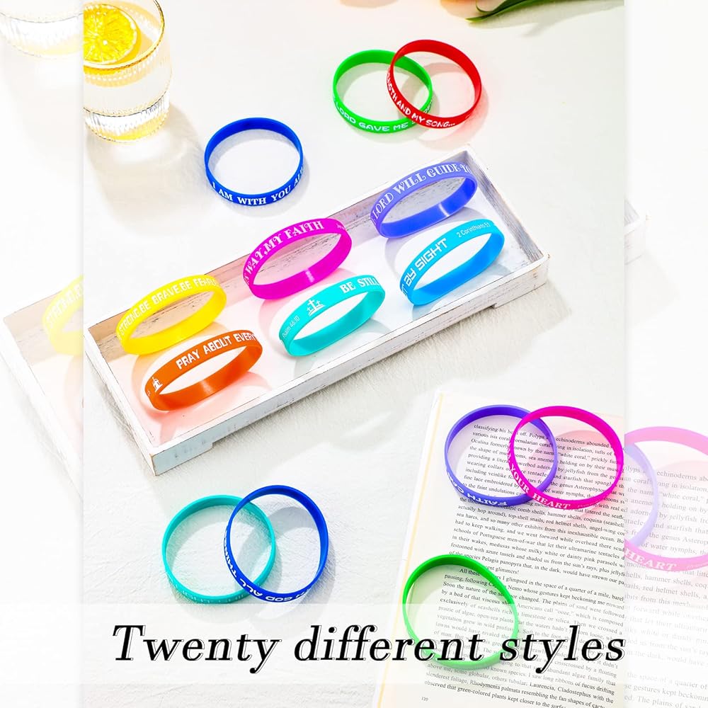 Satisfy Your Gifting Needs: you will receive 100 pieces of bible verse rubber bracelets in 20 styles, 5 of each style, enough quantity and beautiful appearance can meet your use and replacement needs, you can also share them with your classmates and family members