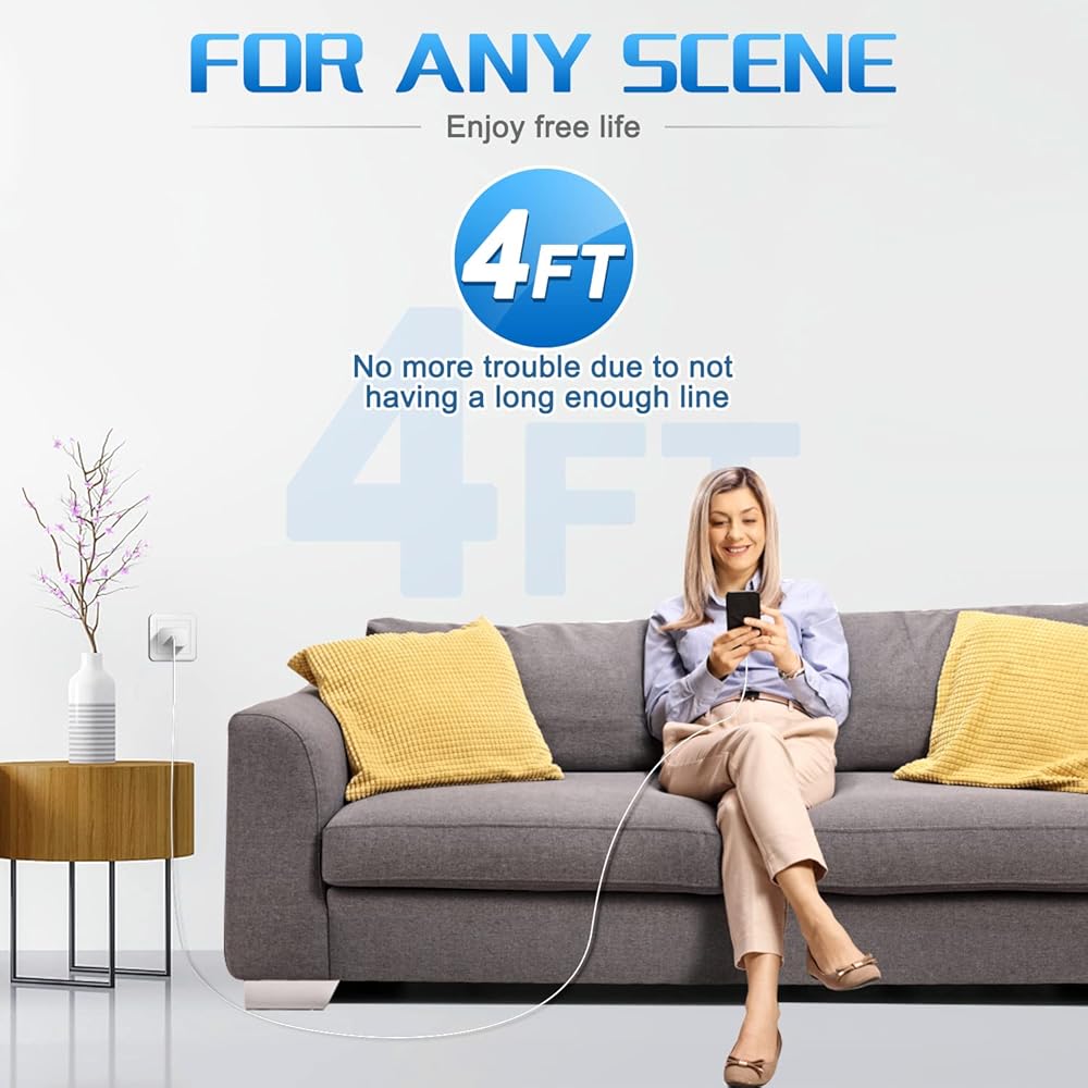 Super Safe & Fast Charging: Our wall charger and USB C-L cable safety system ensures complete protection for your devices, avoiding from over-voltage, over-charge, over-heat, etc. Tangle-free 4 Feet length is convenient for usage while charging and sync at home/office/travel in bed, hotel rooms, and more.