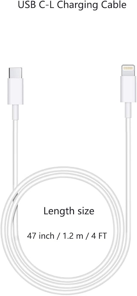 What You Get: 1 pack 20W USB-C charger block and 1 pack 4ft USB C-L fast charging cord. If you have any questions, don't hesitate to contact us! We promise to solve your problems within 24 Hours! (Contact method: "Account service" → "Order history" → "Contact seller")