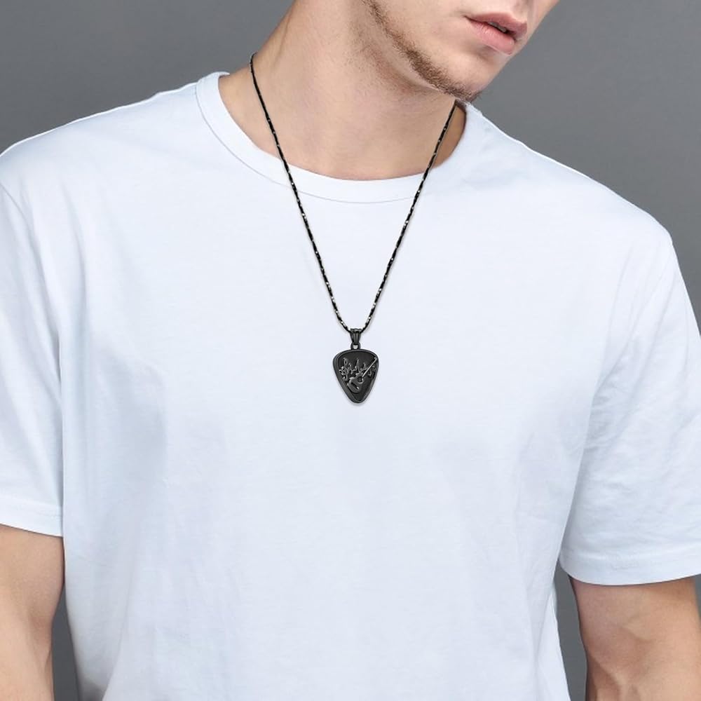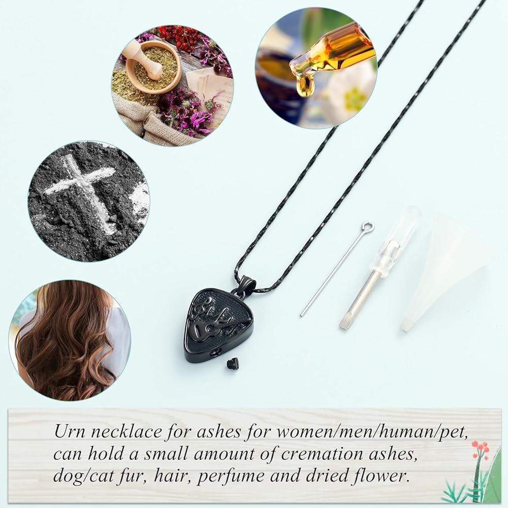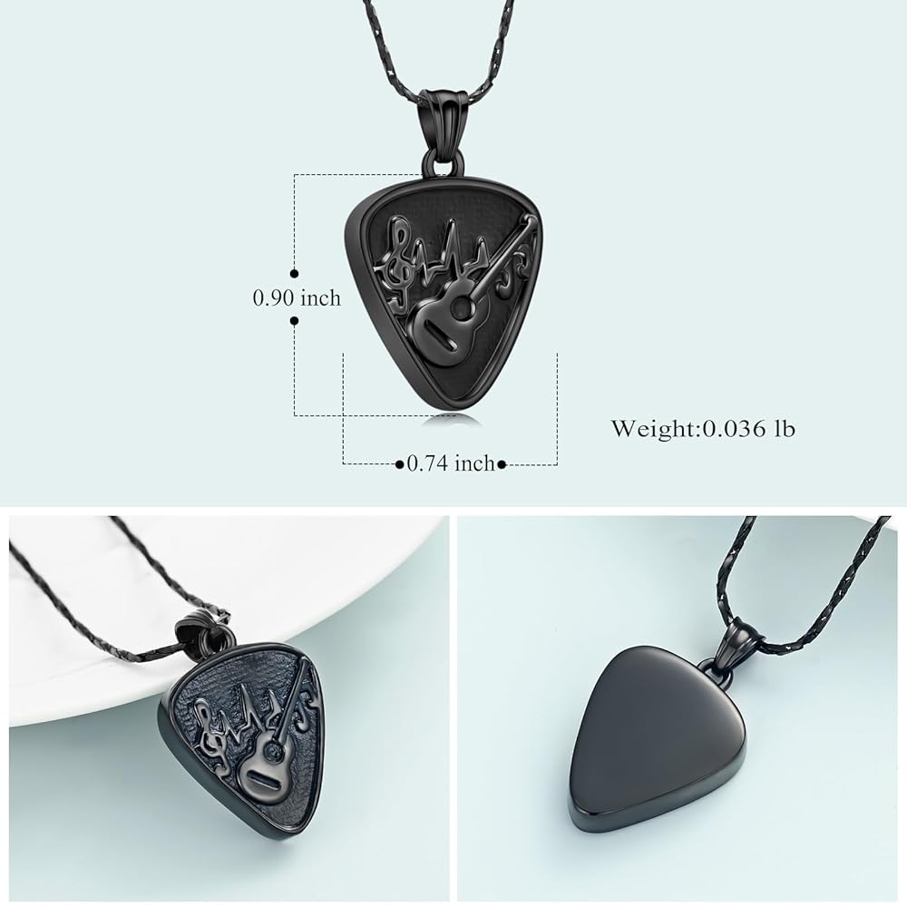 • 【Material】Made of stainless steel, special Guitar Pick urn necklace,durable,waterproof, elegant and fashionable, makes you more attractive.