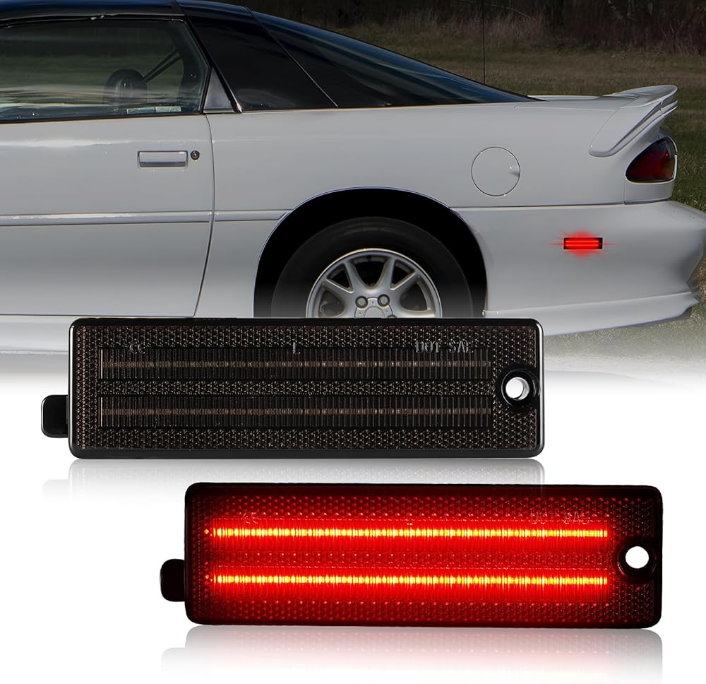 litzland LED Rear Side Marker Lights Replacement for 1993-2002 Chevy Camaro Smoked Lens Red Led Bumper Side Signal Parking Marker Light Assembly Replace OEM Sidemarker Lamps