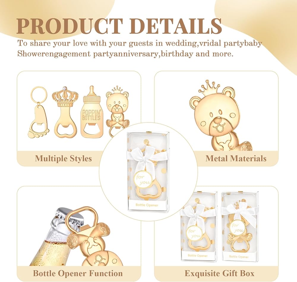 - Baby shower bottle openers are suitable for a variety of events such as baby showers, gender reveal parties, weddings, birthday parties, special events, theme parties and more.