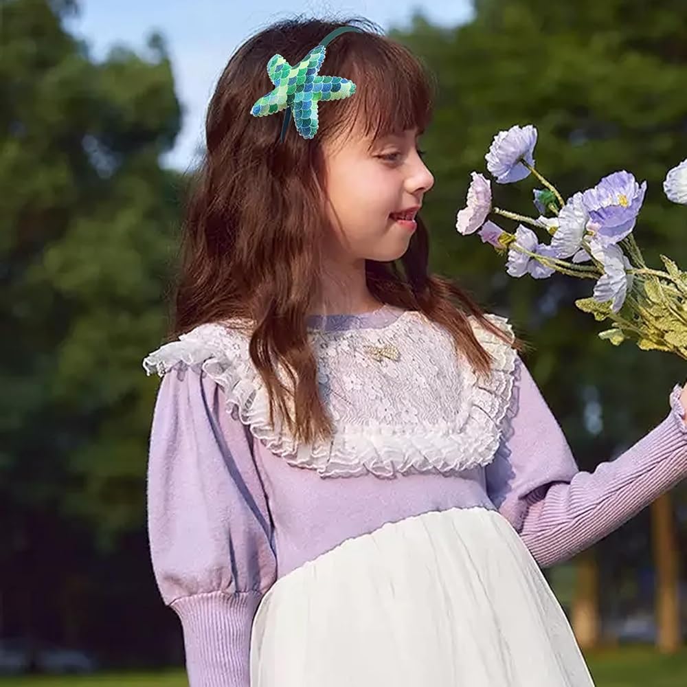 Glitter Starfish Headband Sparkling Sea Star Hair Bands Fish Scale Hair Hoop Mermaid Hair Accessories for Women Girls Birthday Summer Ocean Beach Pool Party Supplies(Green)
