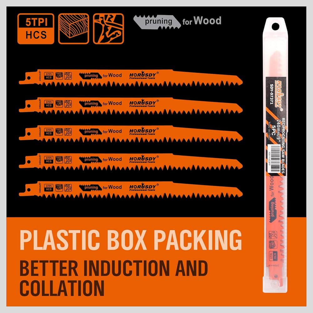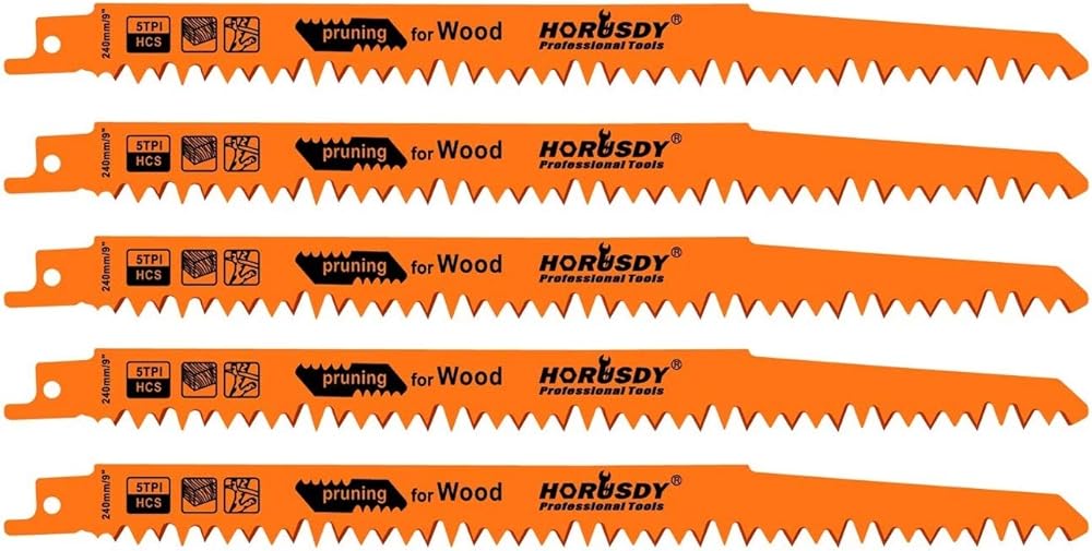 HORUSDY 9-Inch Wood Pruning Reciprocating Saw Blades, 5 Pack, 5TPI Saw Blades