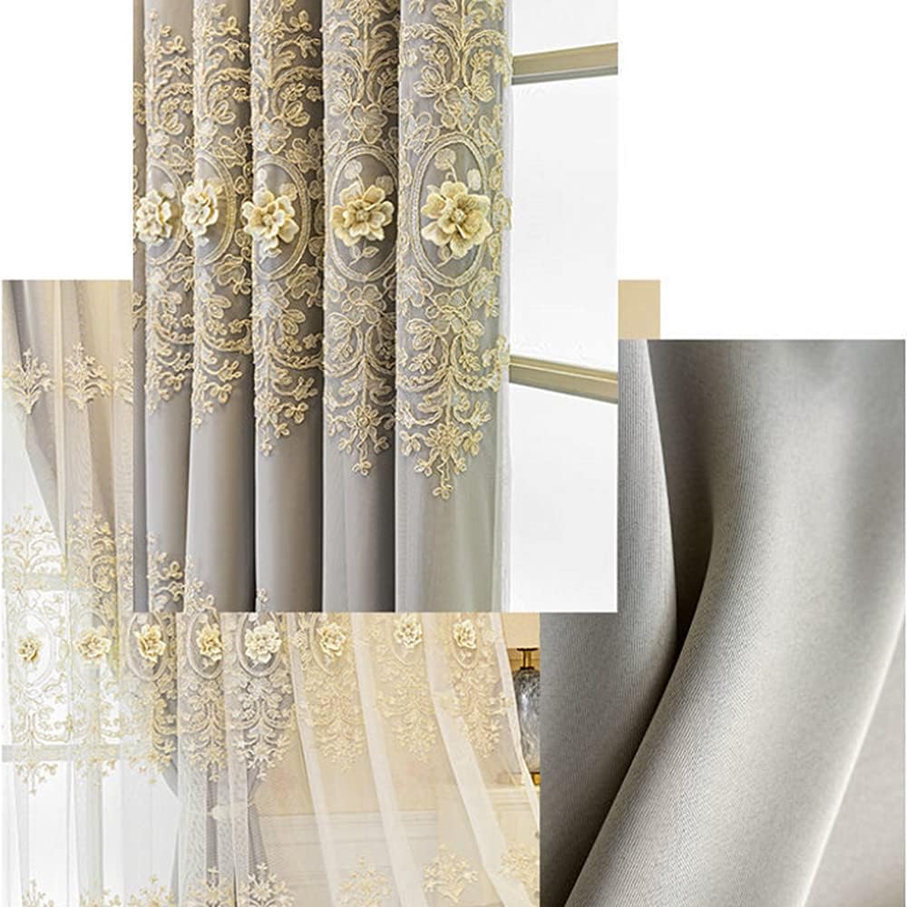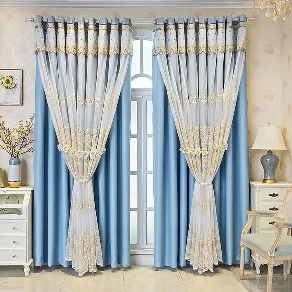 Features: Double layered curtains design, with one layer of solid color fabric curtains and another layer of embroidered sheer curtains, combining shading and aesthetics. The European style embroidery has improved the quality of the product.