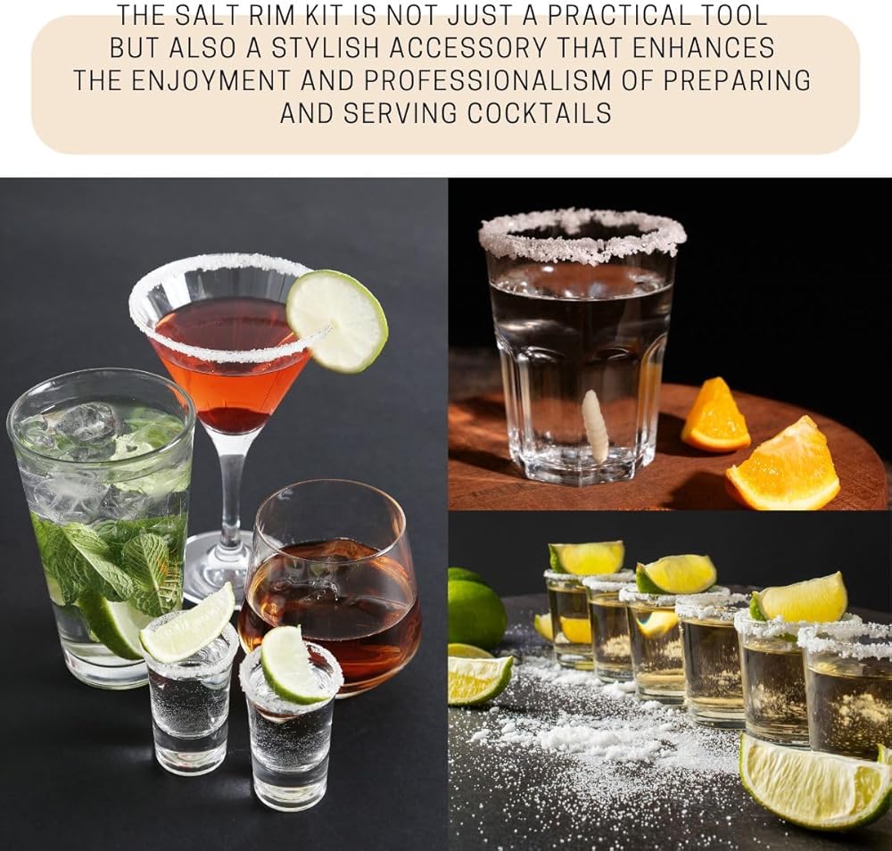 1-Tier Margarita Salt Rimmer Set – Cocktail Sugar Dish for Drinks Bar Accessories and Gift Kit Rim Salter for Glasses Perfect Party Supplies for Cocktails and Home Use