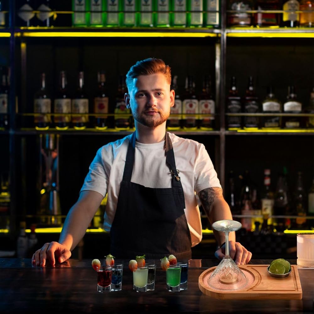 Top Tray with Sponge: Simply dip the rim of the glass onto the sponge and press lightly to create the perfect juice rim for further salt or cocktail sugar wrapping. Sponge can be washed and reused