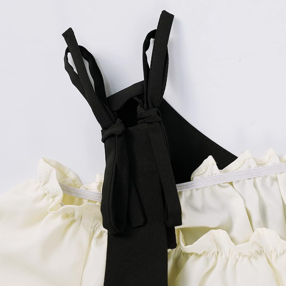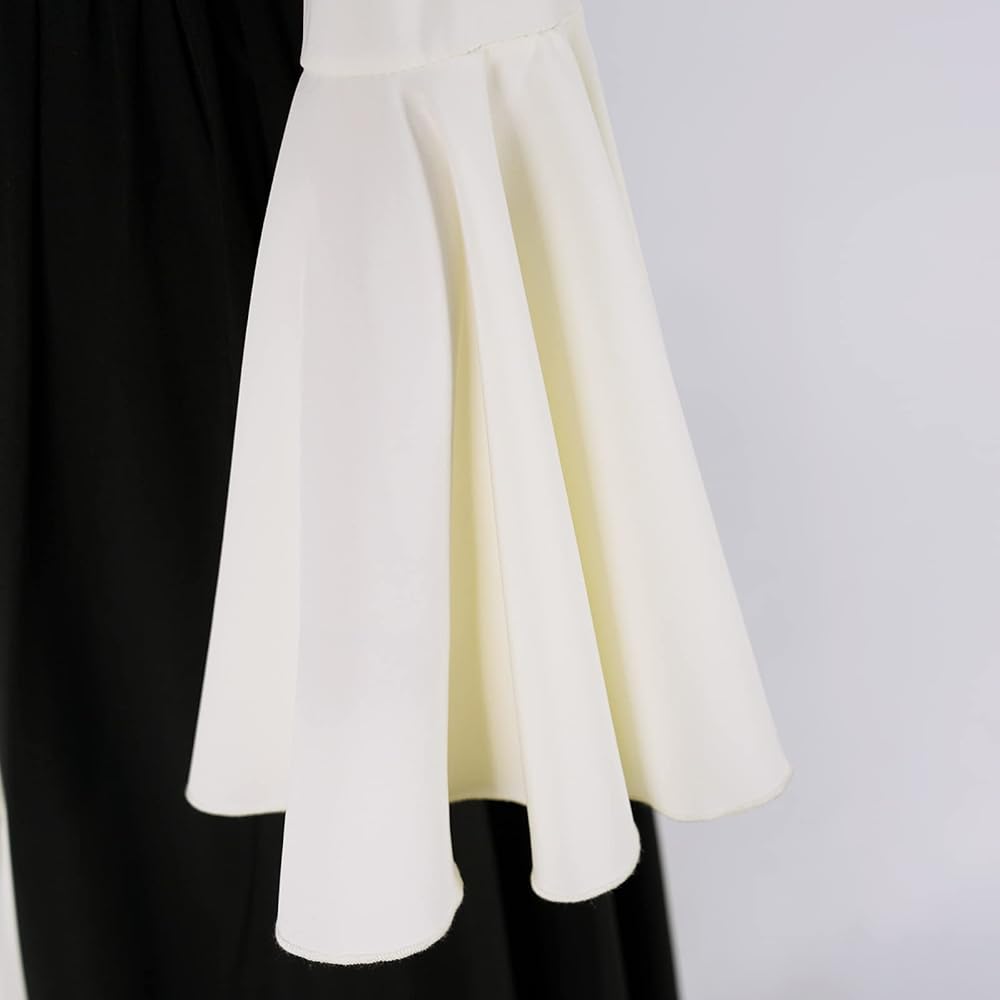 The dress is made of two colors of fabric, which looks elegant and clean. The combination of one-shoulder style and shoulder belt style makes it very beautiful to wear.