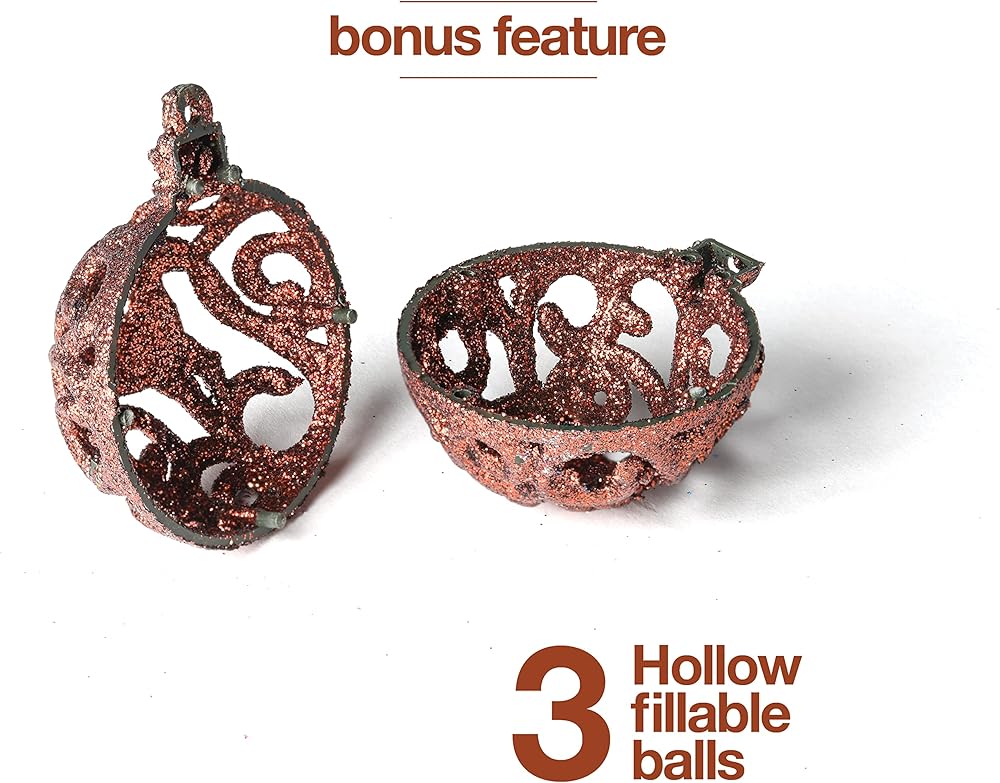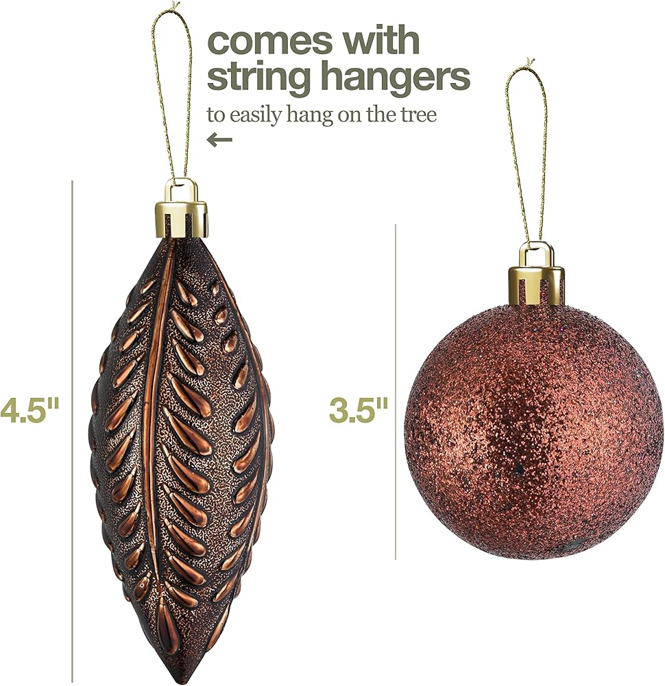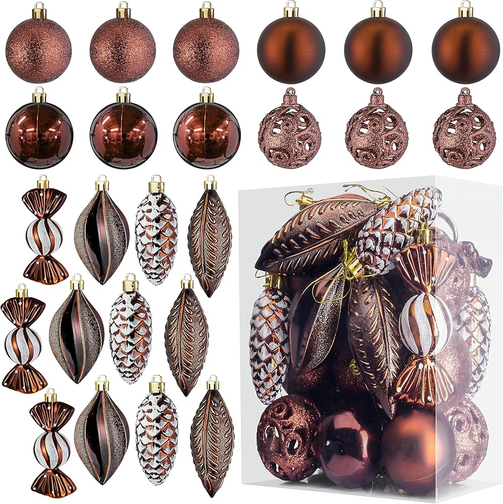 Prextex Christmas Tree Ornaments - Brown Christmas Ball Ornaments Set for Christmas, Holiday, Wreath & Party Decorations (24 pcs - Small, Medium, Large) Shatterproof