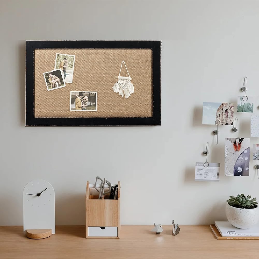 【Good material】High quality wood+linen, with super self-healing ability and repairability. The framed cork board will not be deformed or have ugly pinholes after long-term use.