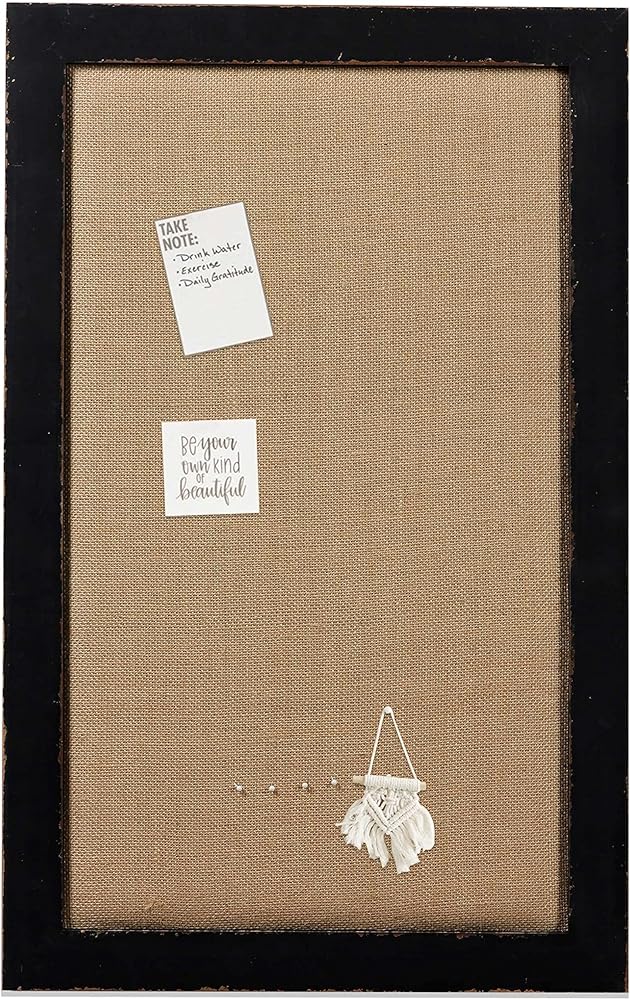 Black Framed Linen Cork Bulletin Board, Large Pin Boards for Walls 18 X 29 Inches, Vision Board Wall Organizer Display Board for Photos, Notice Message Board for Office Home Kitchen Decorative