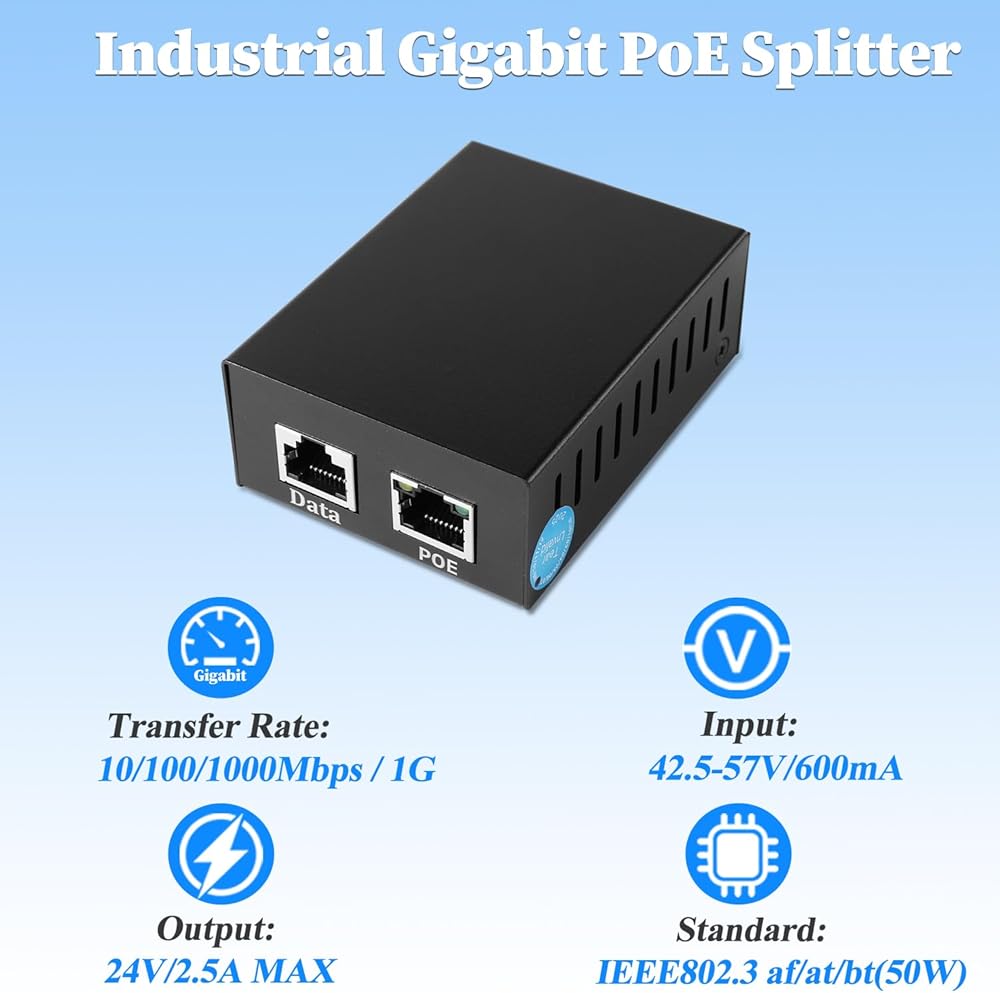 PS0504G High Power active splitters enable data terminals that were not originally designed to accept power from the Ethernet, to be powered by Power over Ethernet midspans. This High Power splitter can power devices such as WiMAX CPEs, small WiMAX base stations, 802.11n Access Points, Thin Clients, PTZ (Pan/Tilt/Zoom) IP Cameras, Video Phones and more.