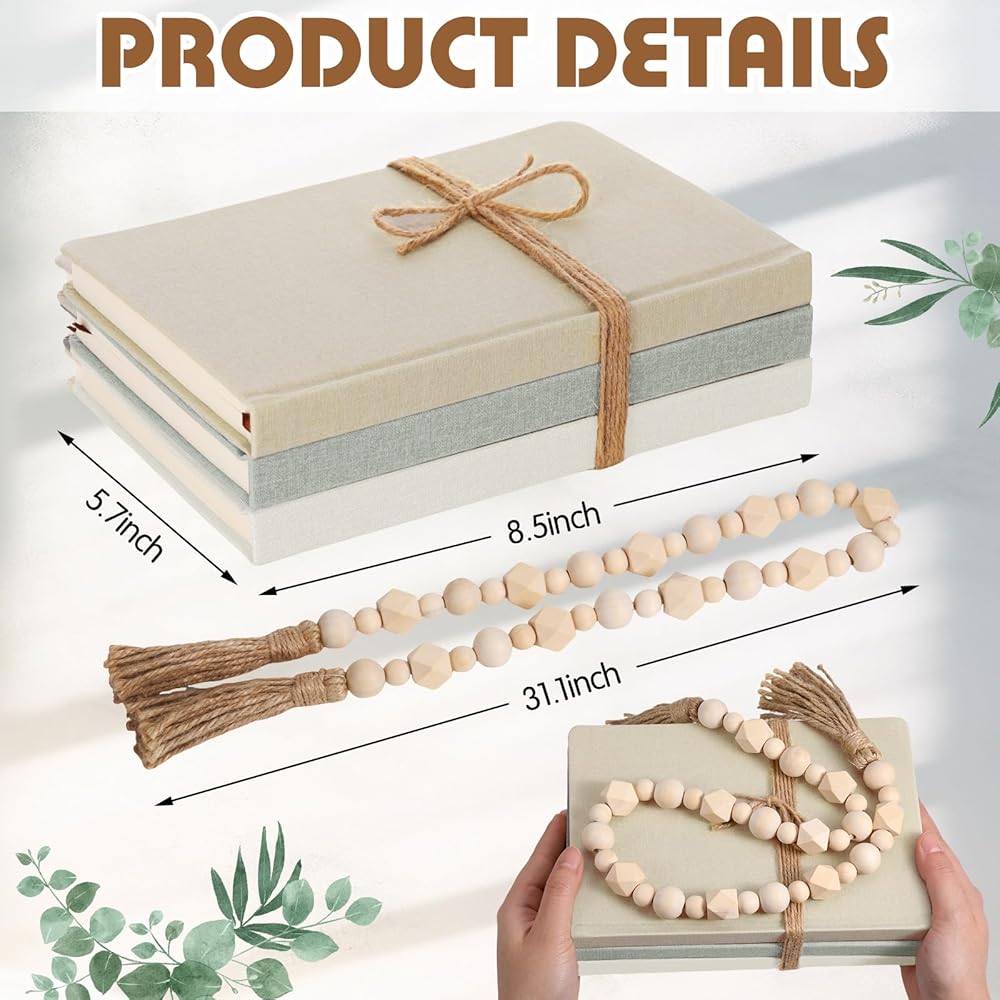The neutral linen cover and wood bead garland make the coffee table books decor versatile enough to complement any room and decor style. Create stunning centerpieces for various spaces, or mix and match the books with different cover colors to create a unique display.