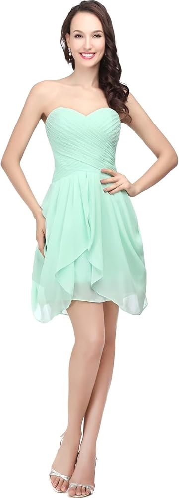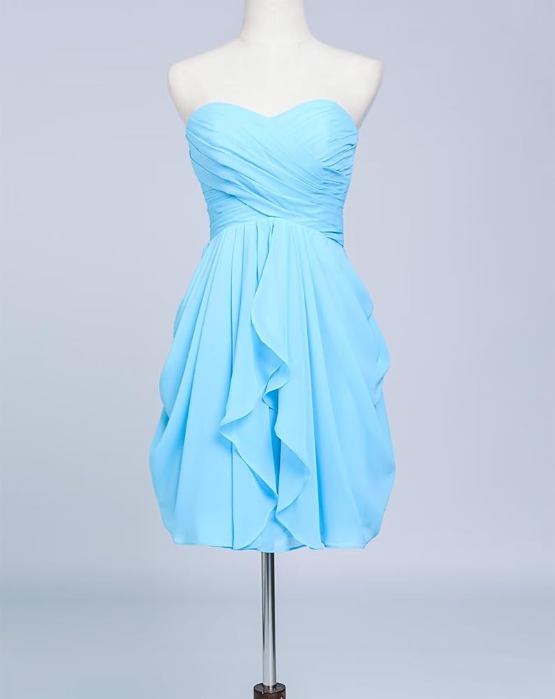 {Dress Design}:Sweetheart,Open Back, Chiffon Fabric with Ruched, Short Women Dress.