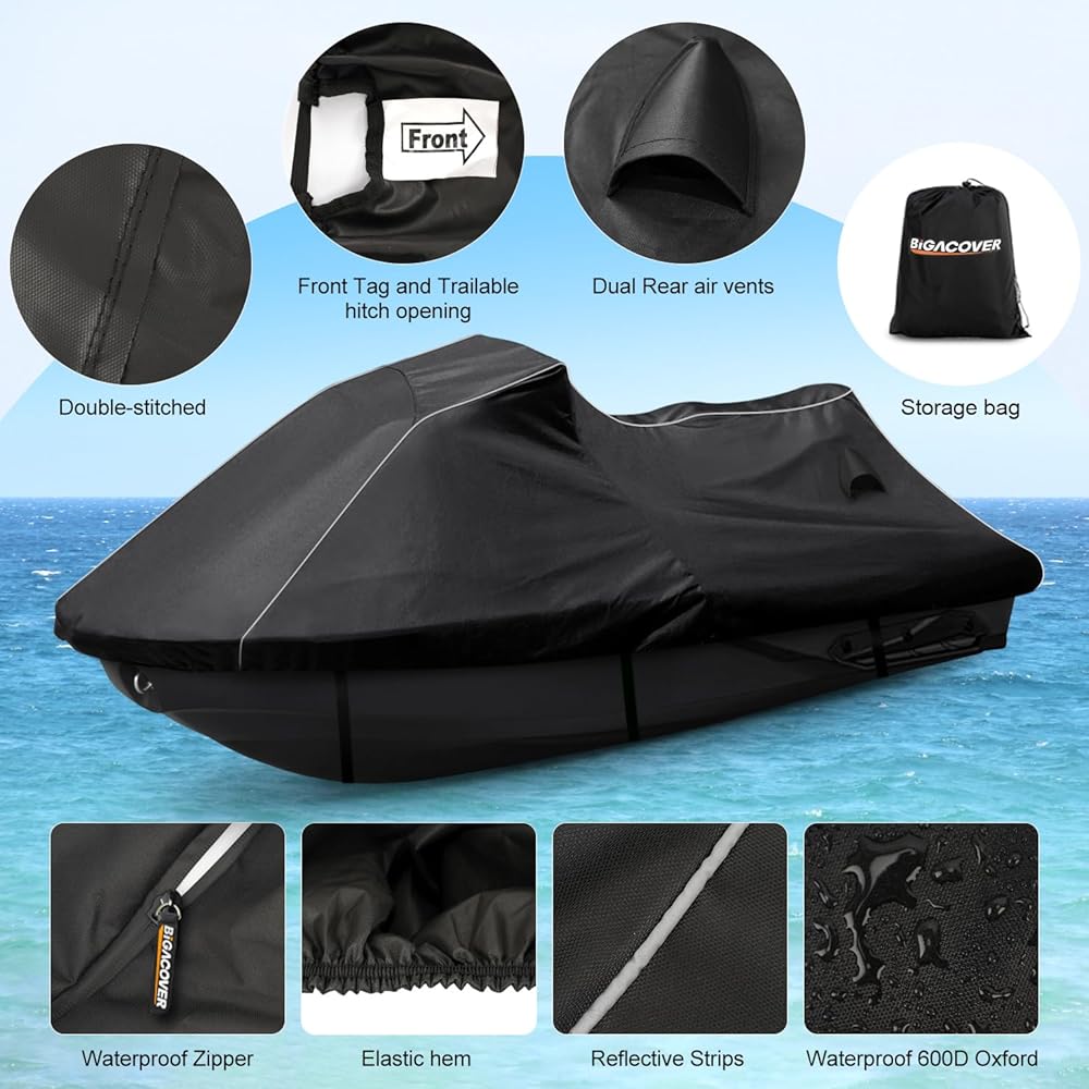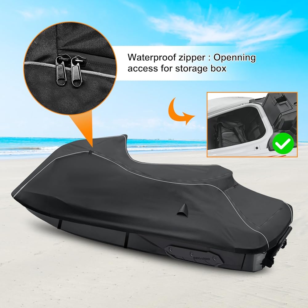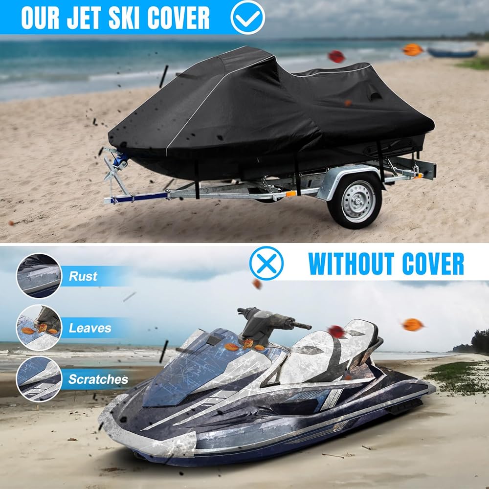【All-Weather Protection】Take High-density 600D oxford cloth as material to make sure its quality is tough, durable and safe under poor windy conditions. Prefect for all weathers and seasons. Preserve your VX Jetski and paint Against All Rain, Snow, Sun, Bird Droppings, Dust/Dirt - Approved for All Season Use (Spring, Summer, Fall, Winter).