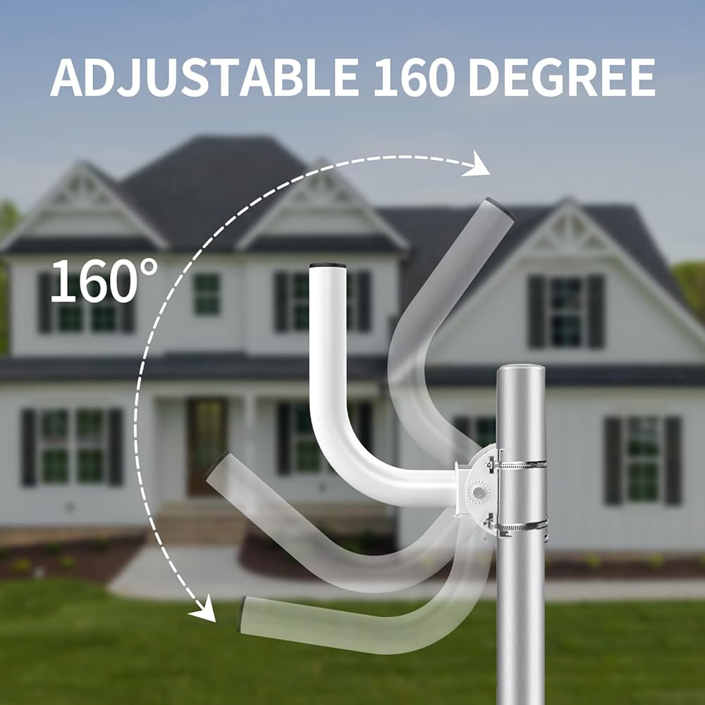 [Robust Outdoor Performance] Rust prevention design of pole mount bracket to withstand harsh weather conditions, ensuring long lasting performance without rusting or degrading. Ideal for use in exposed areas such as rooftops, walls, and poles, providing secure and stable mounting.