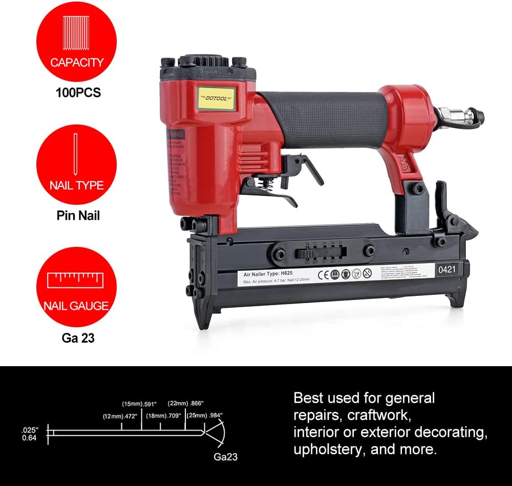 【Professional Nail Gun】This 23 GA Pin Nailer features a durable aluminum body and an ergonomically designed comfortable grip. Work in the pressure range of 60 to 100 psi with the usual 1/4 inch NPT.