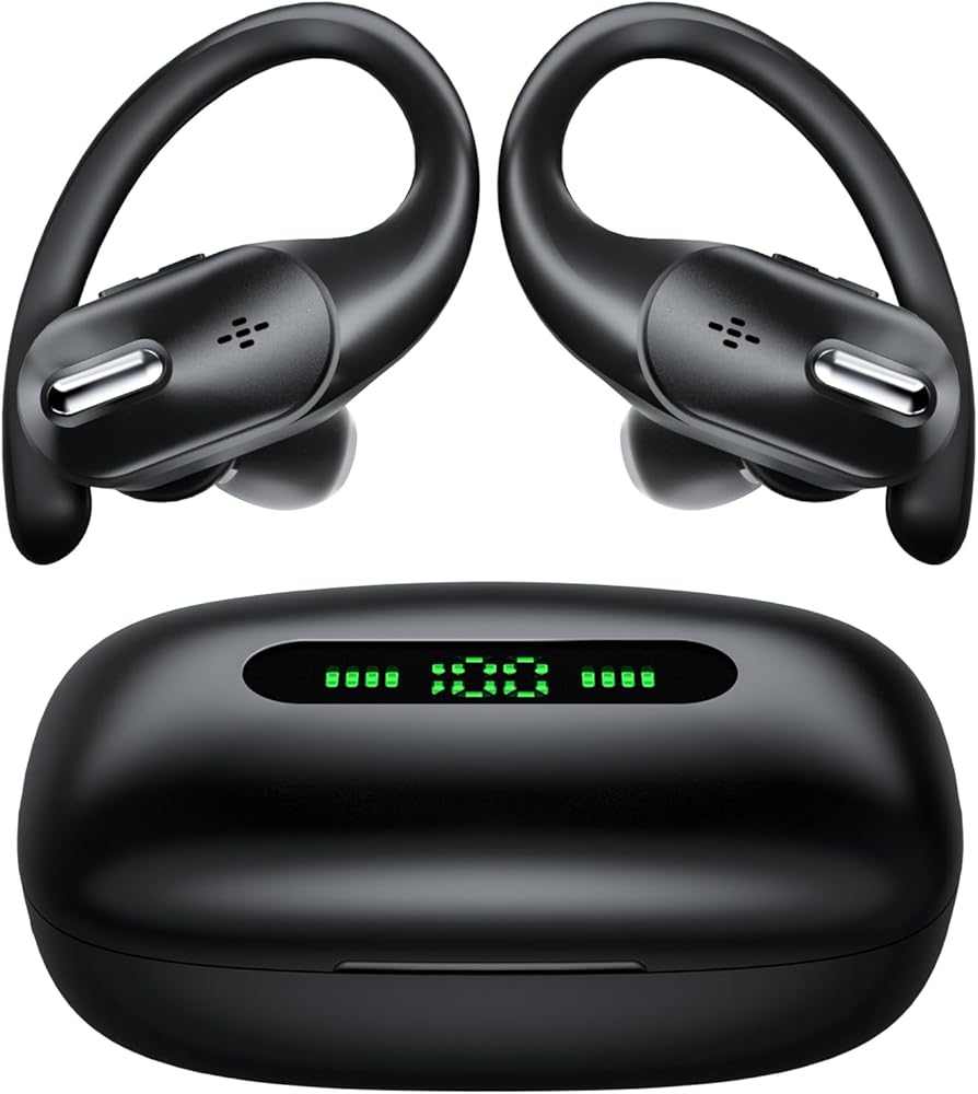 Wireless Earbuds Bluetooth Headphones 120H Playback LED Display Deep Bass Sport Ear buds with Earhooks Waterproof in Ear Earphone for iPhone Samsung Android Cell Phones Work Game TV PC Laptop Computer