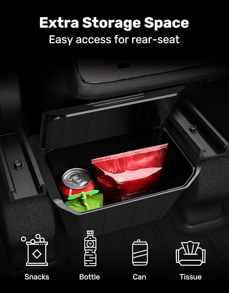 𝐄𝐱𝐭𝐫𝐚 𝐒𝐭𝐨𝐫𝐚𝐠𝐞 𝐒𝐩𝐚𝐜𝐞 - Maximize storage for your 2024 2023 2022 2021 2020 2019 Tesla Model Y. Say goodbye to limited space and make access to snacks, drinks, and essentials effortless for passengers in the backseat.