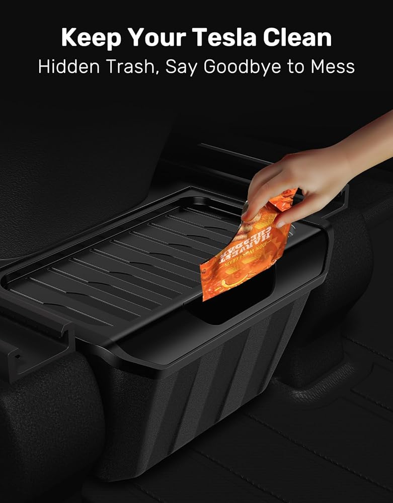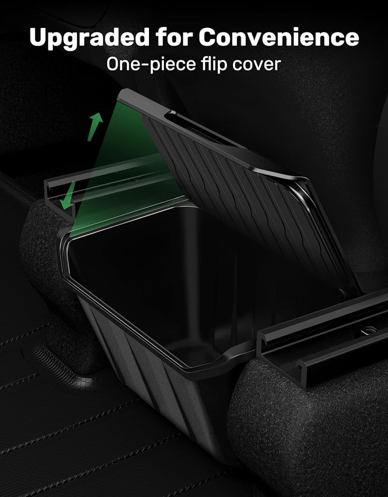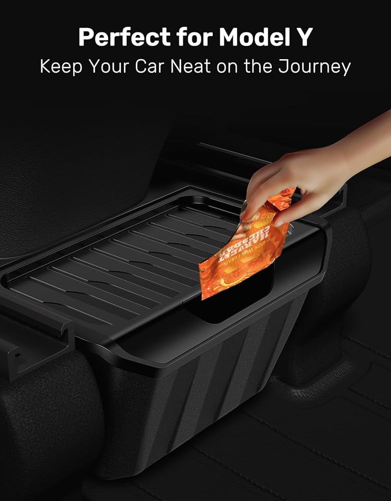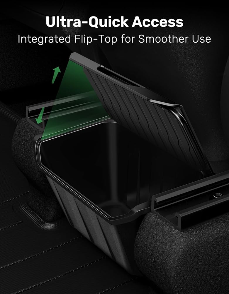 Zanch Tesla Trash Can, Multi-Use & Easy to Clean, Rear Center Console Organizer Designed for Model Y (2020-2025), Tesla Model Y Accessories 2025 [Not fit for New Model Y Juniper] - Hinged Lid