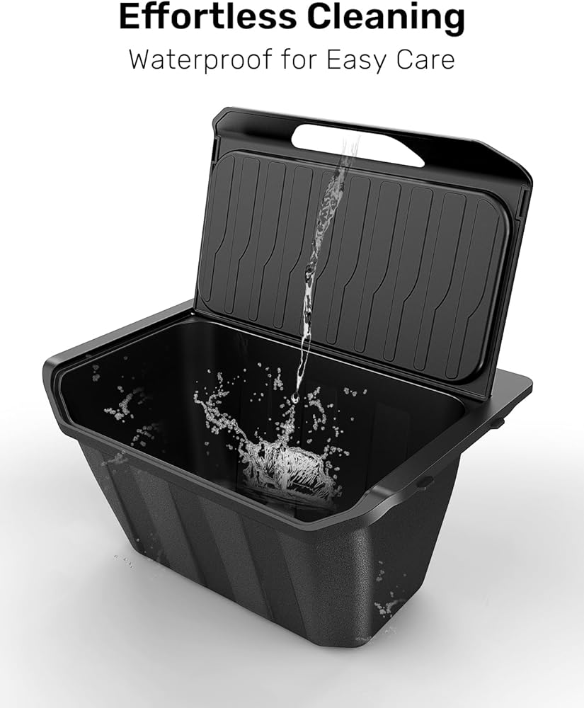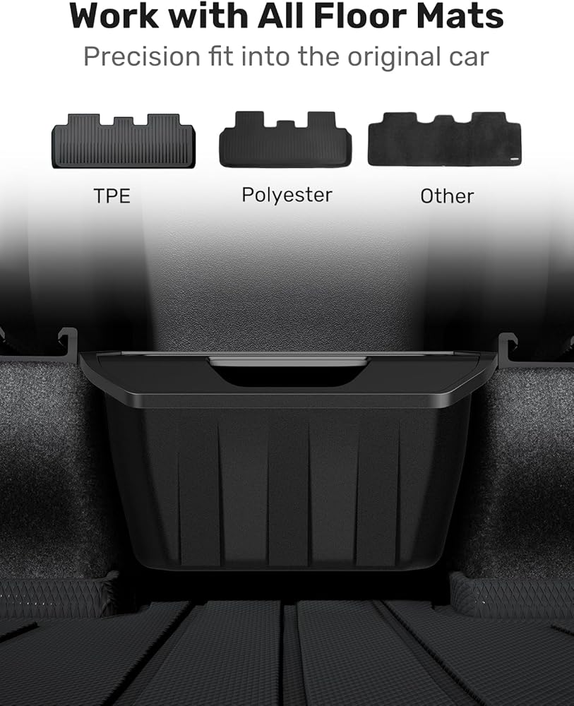 𝐄𝐚𝐬𝐲 𝐭𝐨 𝐂𝐥𝐞𝐚𝐧 - The Model Y rear storage box is made of eco-friendly TPE box and durable ABS lid, aligning with Tesla's sustainability ethos. Balancing aesthetics with practicality, it is easy to clean with just a rinse of water or a wipe down with a damp cloth.