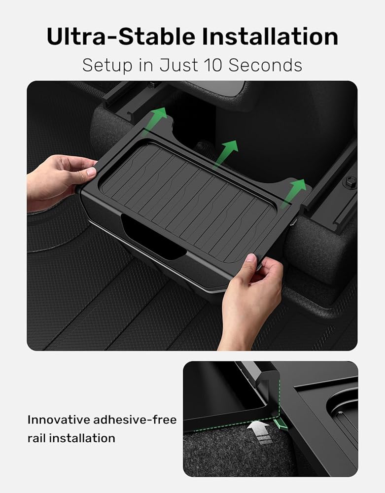 𝐒𝐞𝐚𝐦𝐥𝐞𝐬𝐬 𝐈𝐧𝐭𝐞𝐠𝐫𝐚𝐭𝐢𝐨𝐧 - The Model Y storage box mounts seamlessly beneath the rear air vents, allowing it to work in harmony with all floor mats.