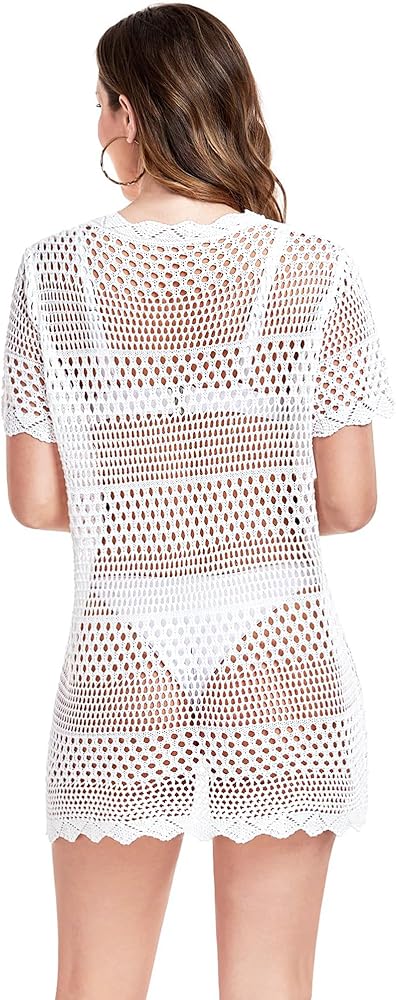 Crochet Knit Coverup: These hallow-out cover-up dresses are knitted from soft and comfortable Acrylic or Polyester fiber, which is gentle against your skin and ensures better relaxation.