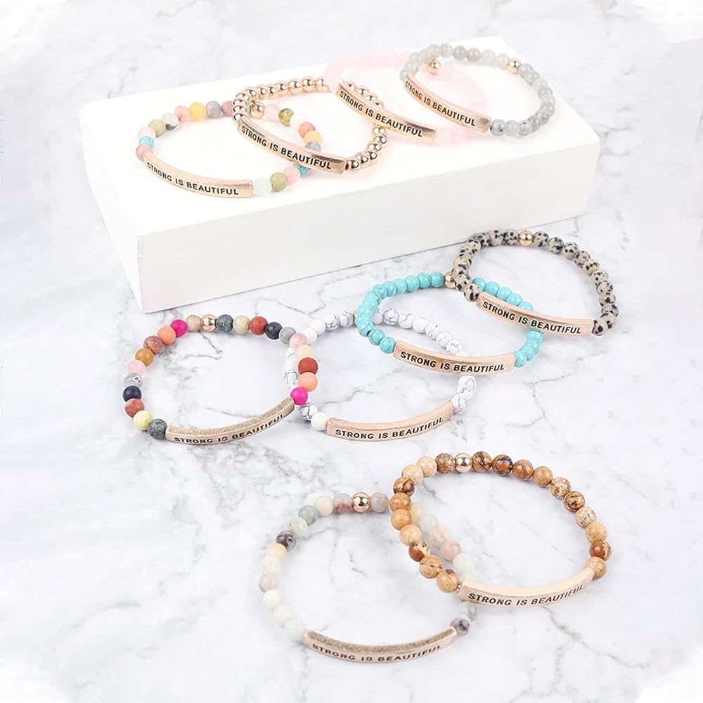 PRODUCT DETAILS - Choose your favorite engraved message. You can mix n' match to create a unique arm candy collection. MATERIAL: Base Metal, Natural Stone. MEASUREMENTS: Approx. 4” Diameter. CARE INSTRUCTIONS: Limit exposure to water, perfume or body cream to extend the life of your jewelry