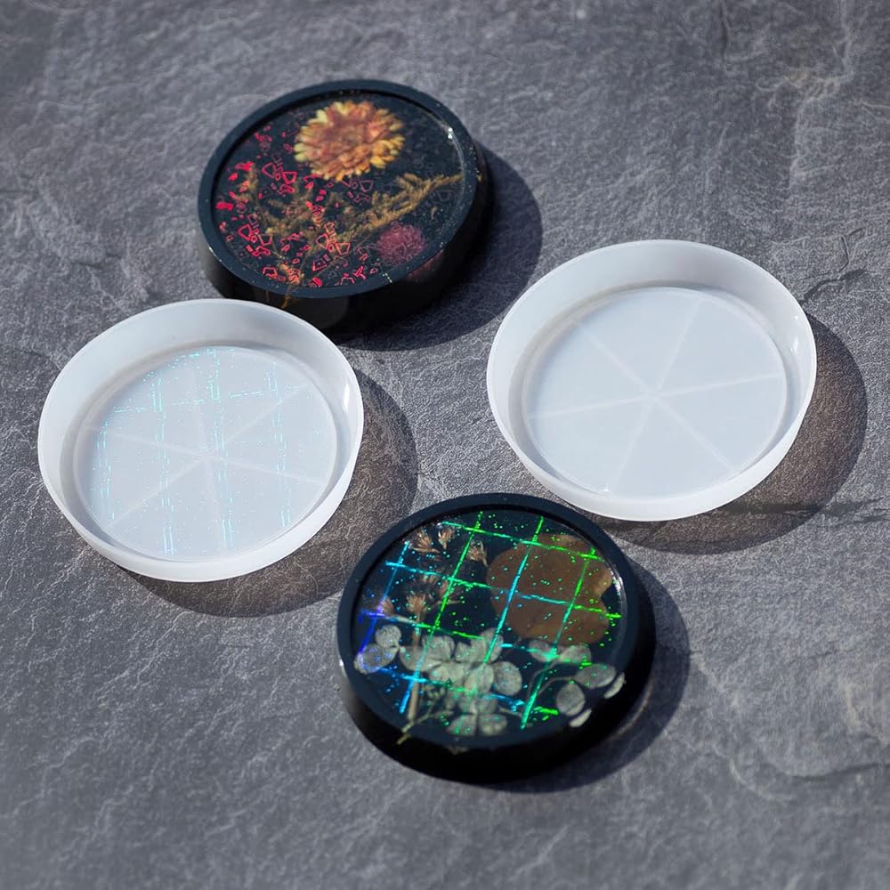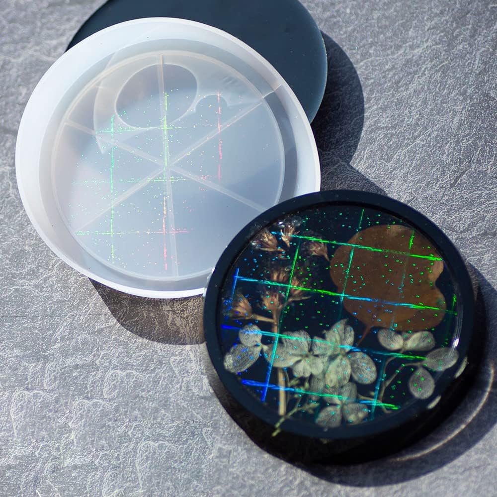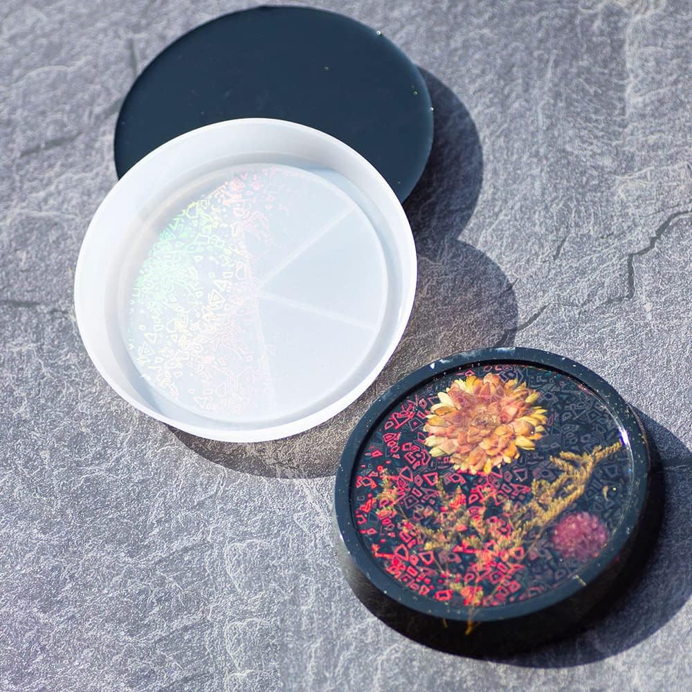 Playing Mold Resin Coaster Molds,2Pcs circular laser holographic Coaster Molds for Resin,epoxy Resin Molds for Making Resin Coasters,cups Mat,home Table Decoration