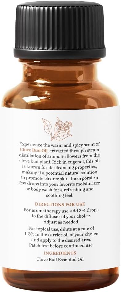 Experience the warm and spicy scent of Clove Bud Oil, extracted through steam distillation of aromatic flowers from the clove bud plant. Rich in eugenol, this oil is known for its cleansing properties, making it a potential natural solution to promote clearer skin. Incorporate a few drops into your favorite moisturizer or body wash for a refreshing and soothing feel. For an enticing and personalized aroma, blend Clove Bud Oil with cinnamon bark, cassia, and cedarwood essential oils.