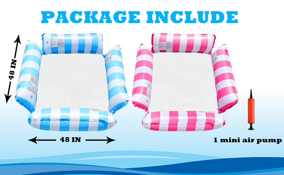 INCLUDED PACKAGING: When you don't need to use the pool float for a while, you can close the pool floaties for adults and fold it up to dry it out, and then put it in a cool place for the next time to continue to use it. Package Includes pool floats adult x 2, Inflatable tube x 1.